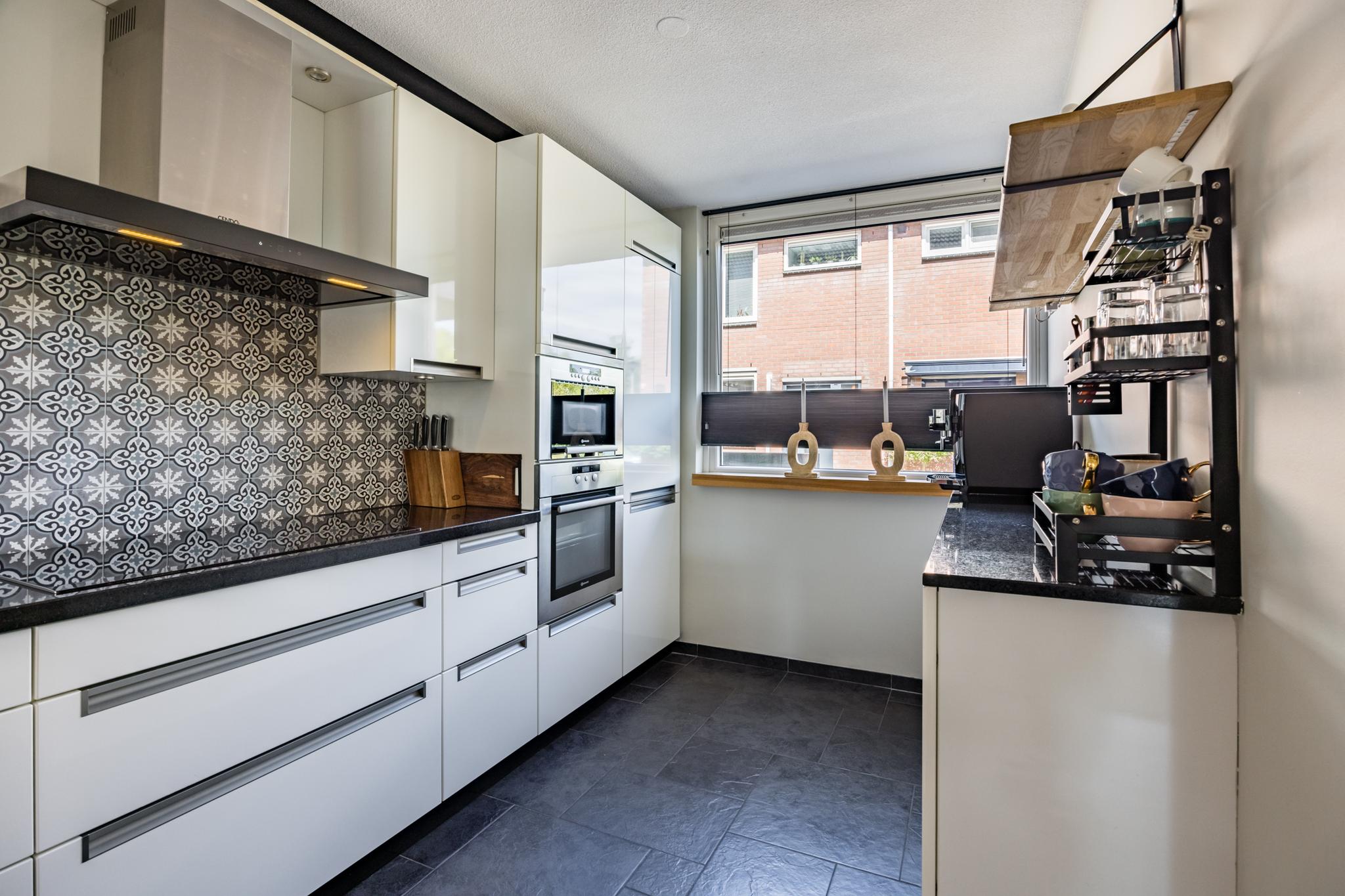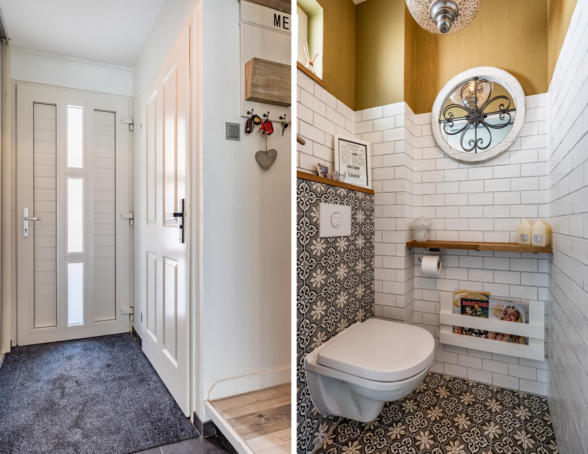 Hal/entree met de trapopgang, schuifwandkast met de meterkast en de mooie toiletruimte met inbouwcloset. De woonkamer is vergroot door een uitbouw, en de volledig glazen pui maakt de woonkamer prettig licht. De open keuken is gesitueerd aan de voorzijde van de woning en is compleet met inbouwapparatuur als een: inductiekookplaat, afzuigkap, magnetron, oven, koelkast, vaatwasser en een Quooker kokend waterkraan. Door de lades en kastjes is ook aan opbergruimte geen gebrek!