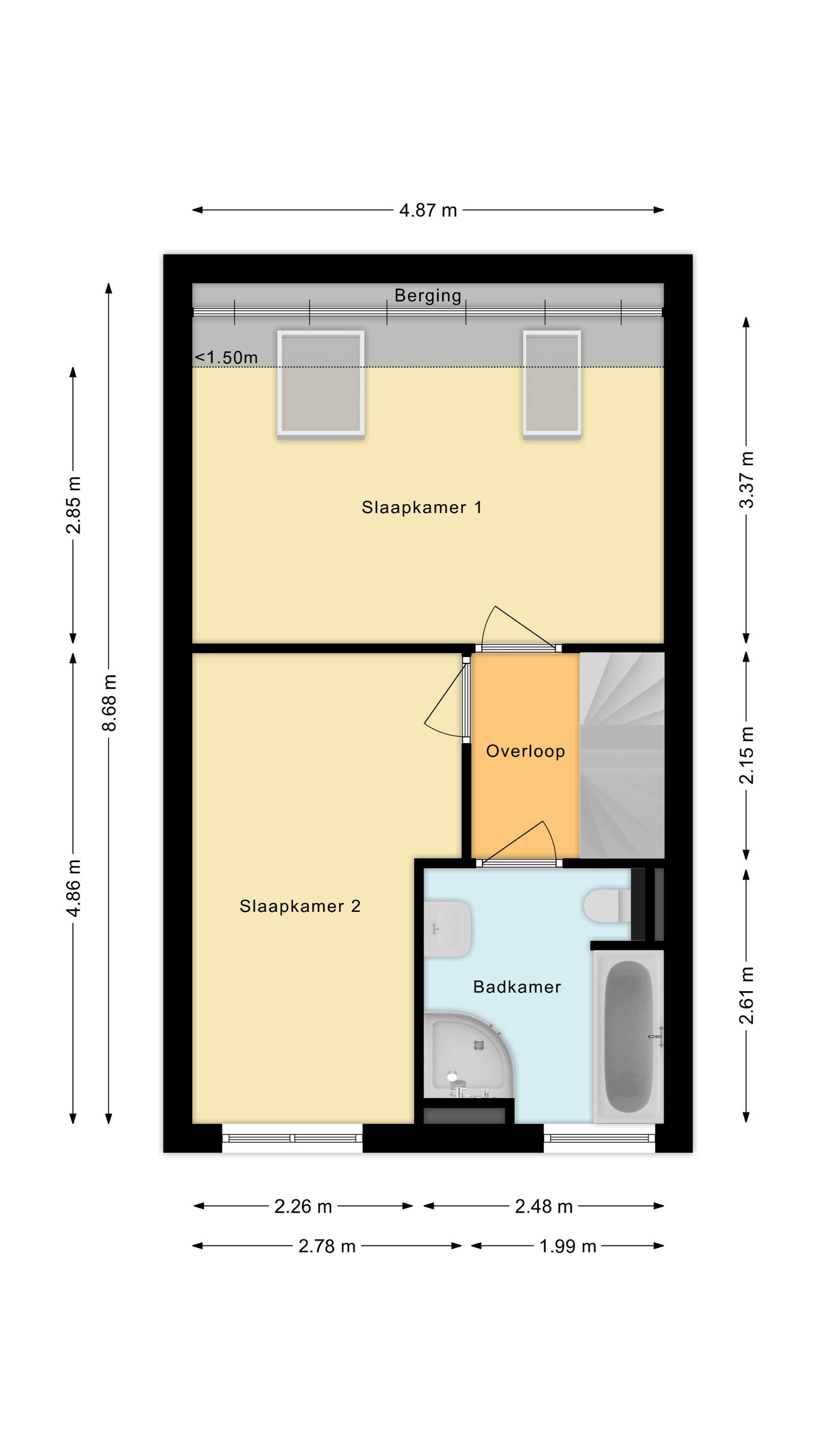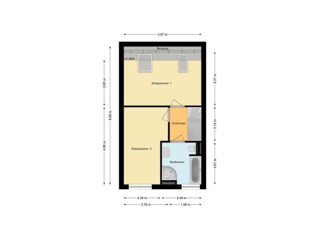 - Slaapkamer 2 : 4.86 x 2.26 / 2.78