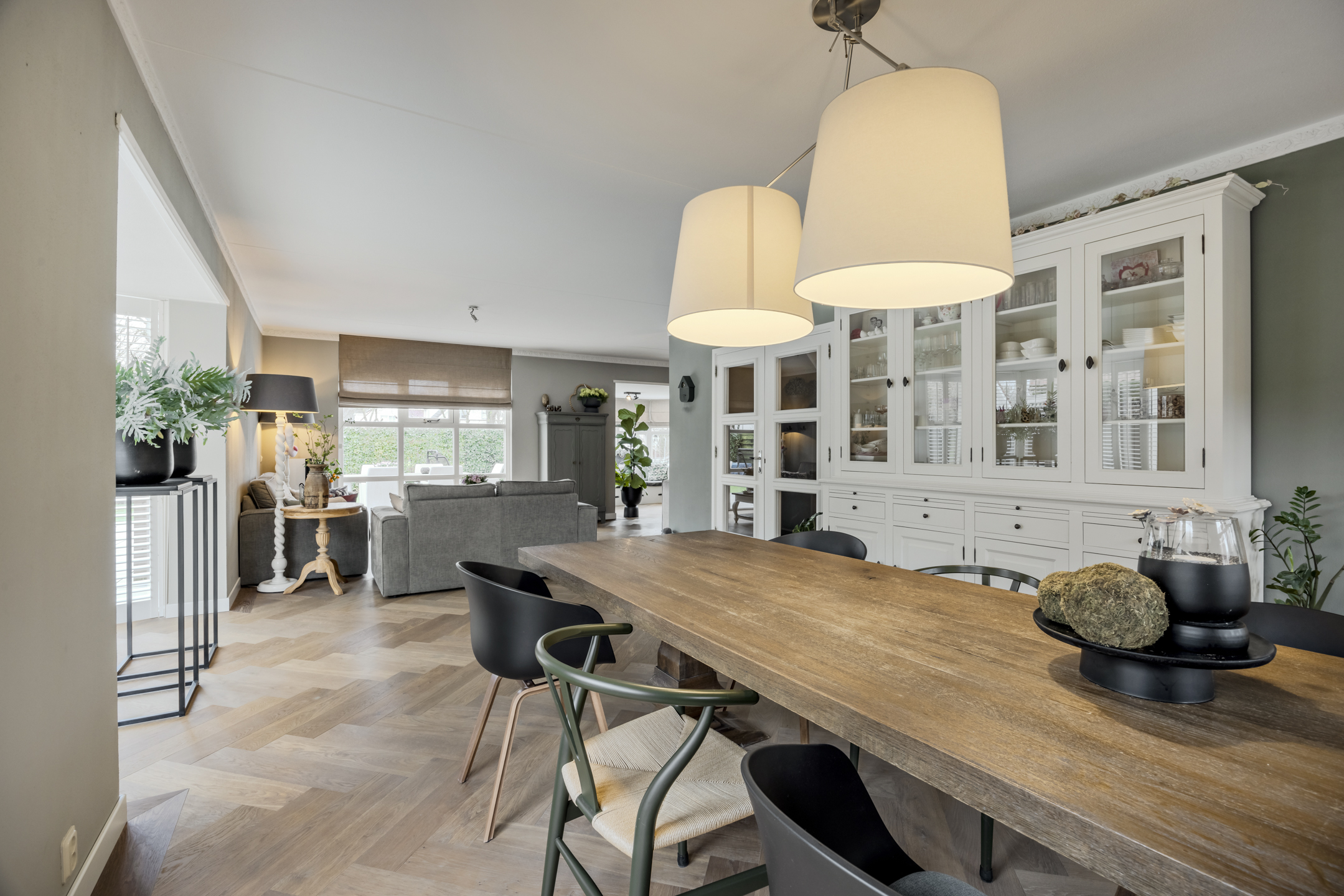 De moderne, verzorgde villa beschikt over een ruime living met houten visgraatvloer en vloerverwarming, sfeervolle erkers en een luxe keuken. De badkamer en het toilet zijn in 2022 in eigentijdse stijl vernieuwd. Daarnaast is er op de begane grond een praktijk-/kantoorruimte aanwezig, ideaal voor werken aan huis. Indien gewenst is deze ruimte ook in te richten als slaapkamer (met badkamer), waardoor de woning levensloopbestendig is. Op de verdieping bevinden zich nog 3 ruime slaapkamers en een dakterras.
