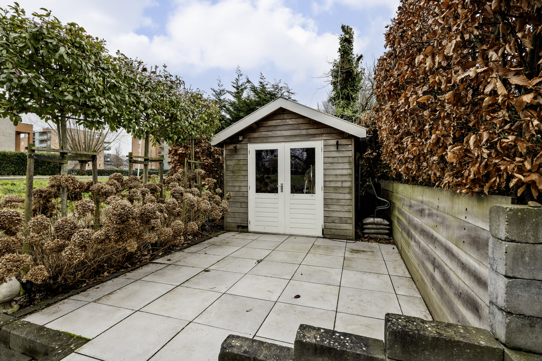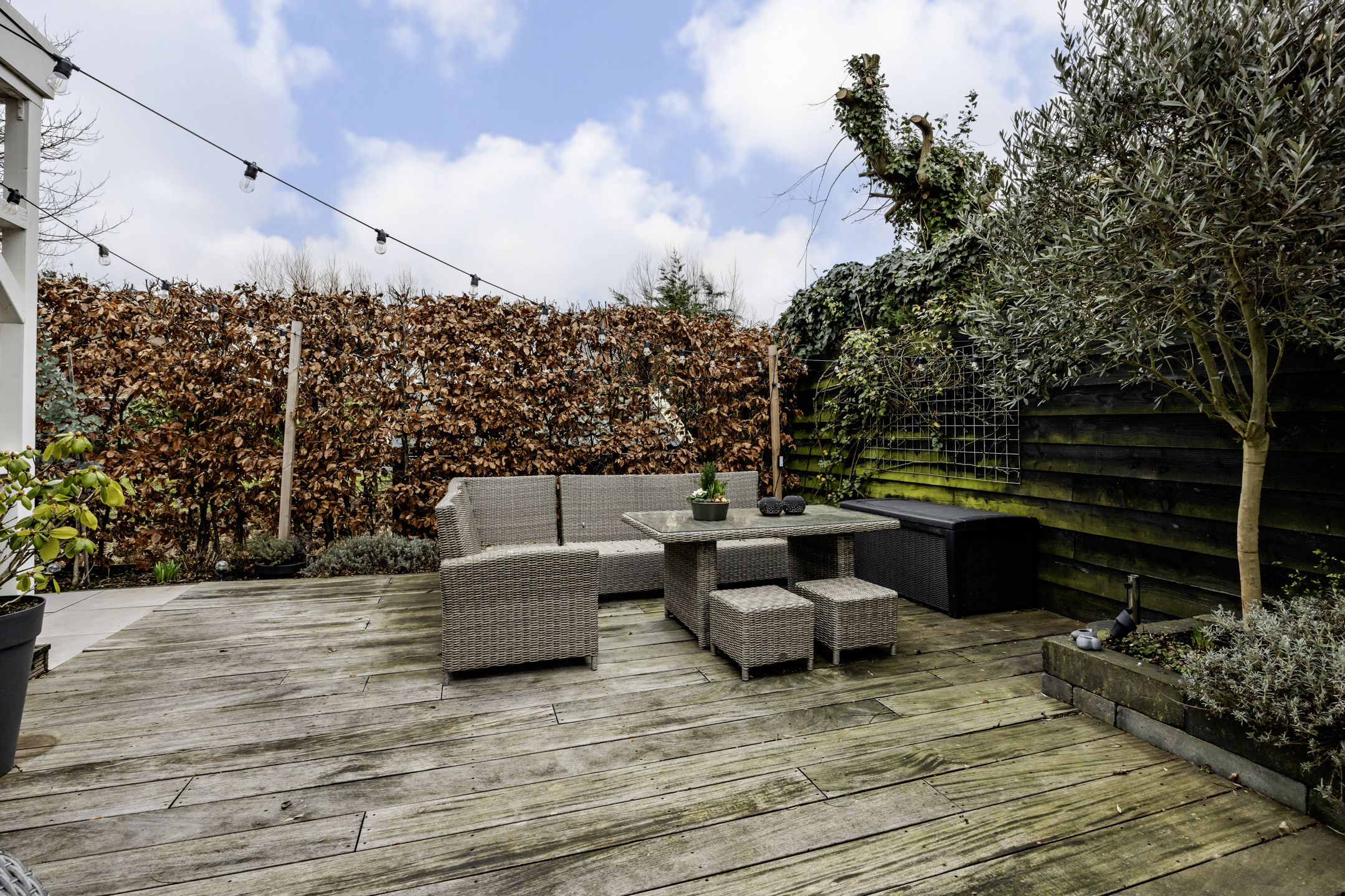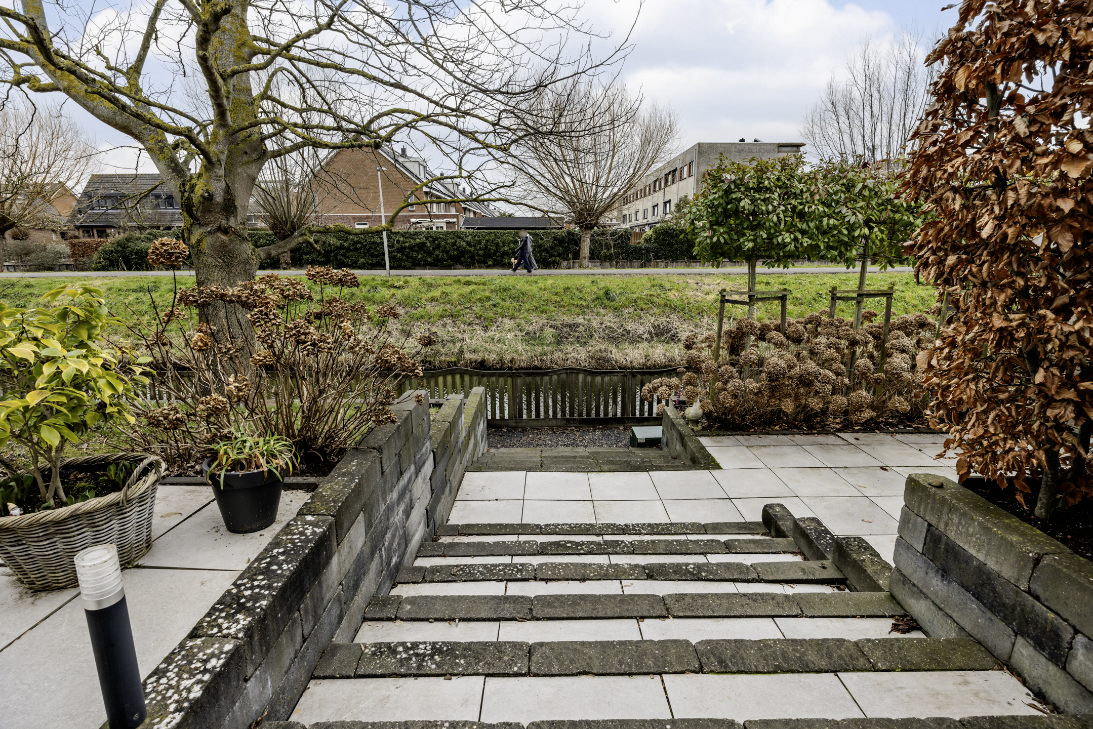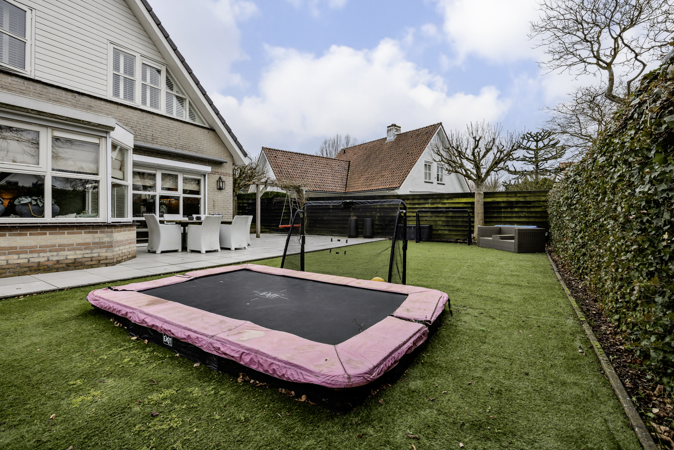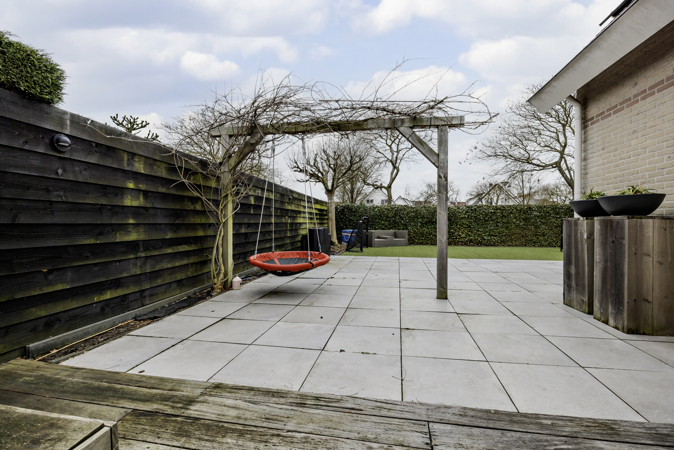 De keurig aangelegde en verzorgde tuin is rondom de woning gelegen. De overkapping biedt een heerlijke plek om ’s avonds of op zonnige dagen te vertoeven, en door de verschillende terrassen/zitjes rondom de woning met elektrische zonneschermen, 1 aan de voorkant en 1 aan de zijkant van de woning, kunt u hier altijd een plekje in de zon- of juist in de schaduw vinden.