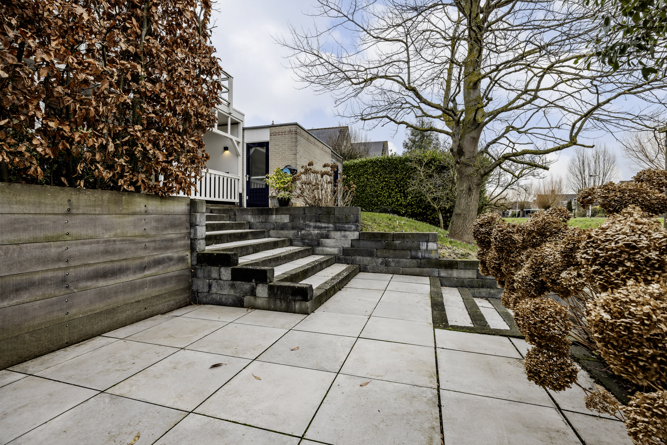 De woning ligt op een ruim perceel van 700 m² met een riante carport (2022), parkeergelegenheid voor meerdere auto’s en een fraai aangelegde tuin met diverse terrassen en een overkapping.