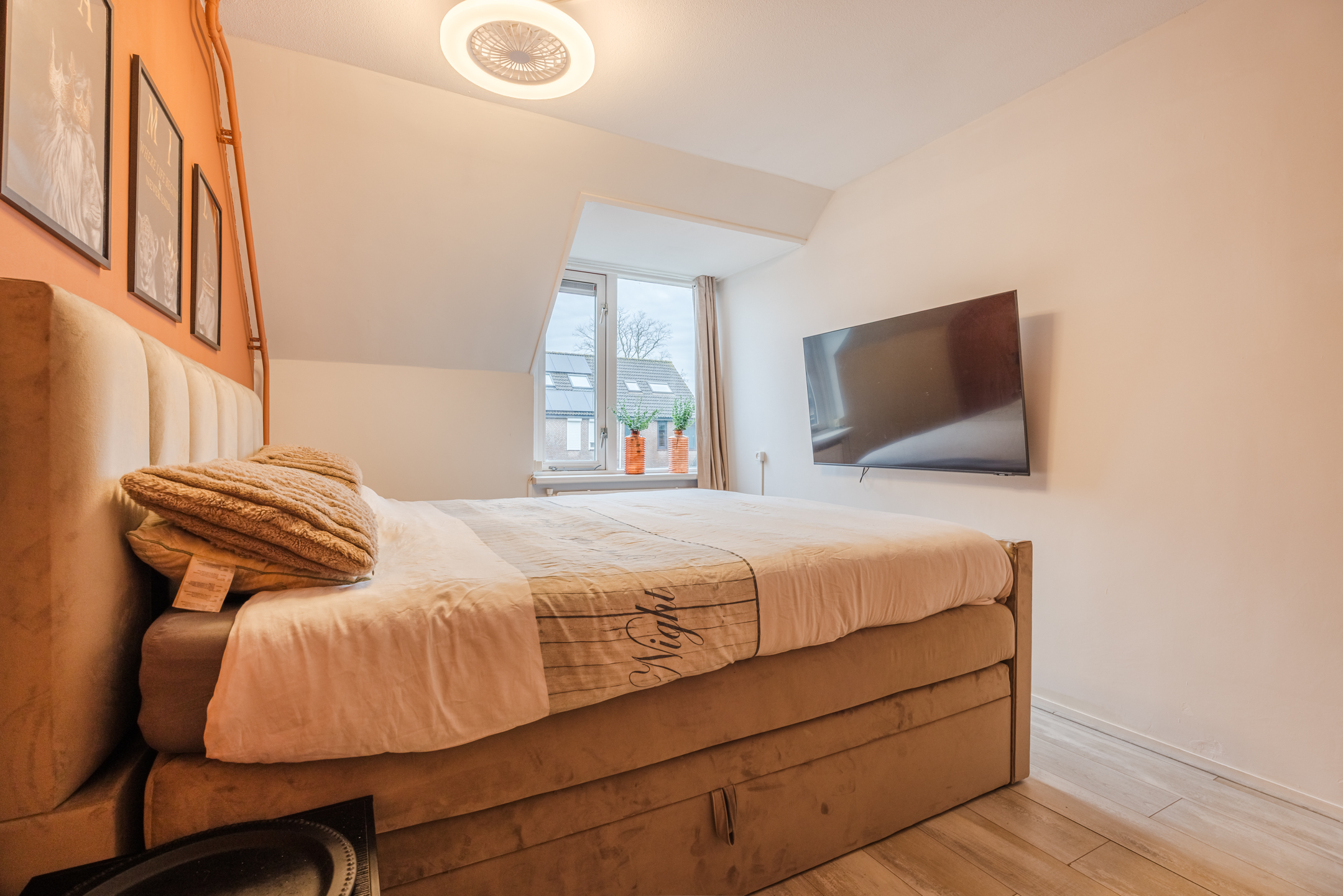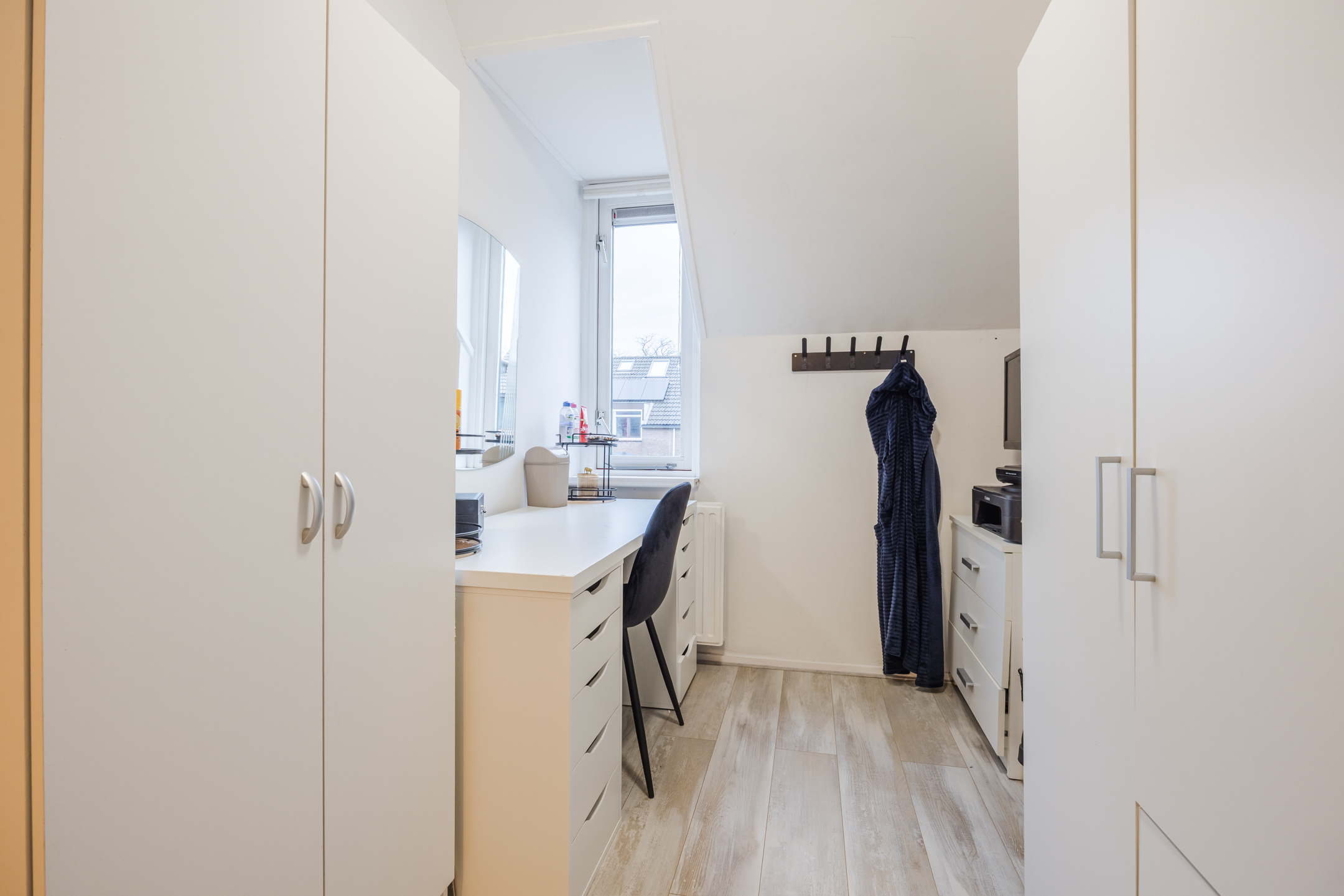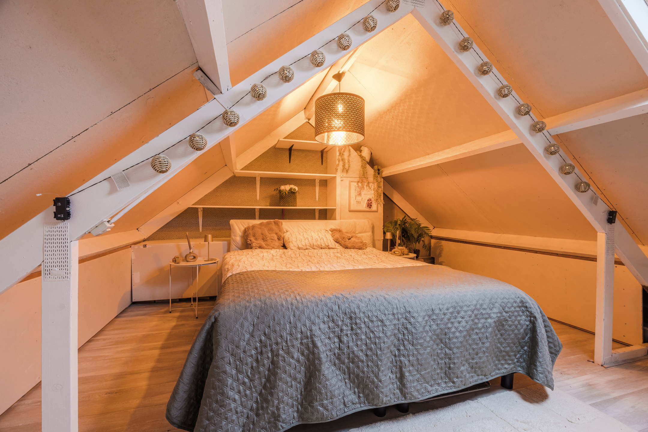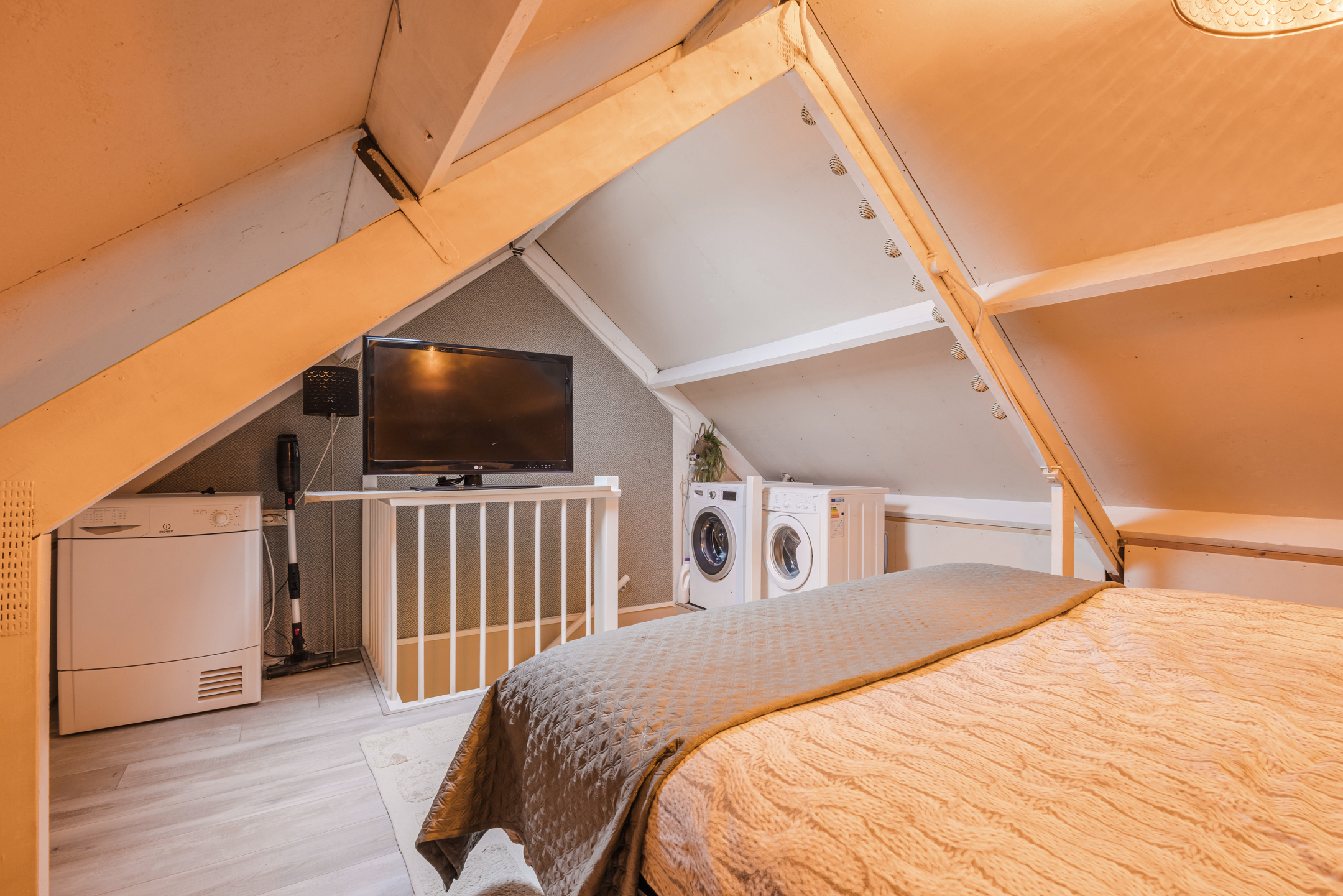 Via een vaste trap bereik je de open zolder met Velux dakraam. Een heerlijke ruimte die zich perfect leent voor een 4e slaapkamer, thuiswerkplek of hobbyruimte. De cv-combiketel (Intergas 2020) is netjes weggewerkt in een vaste kast en ook vind je hier de opstelplaats voor de wasmachine en droger.