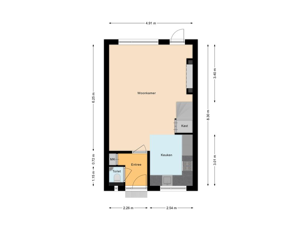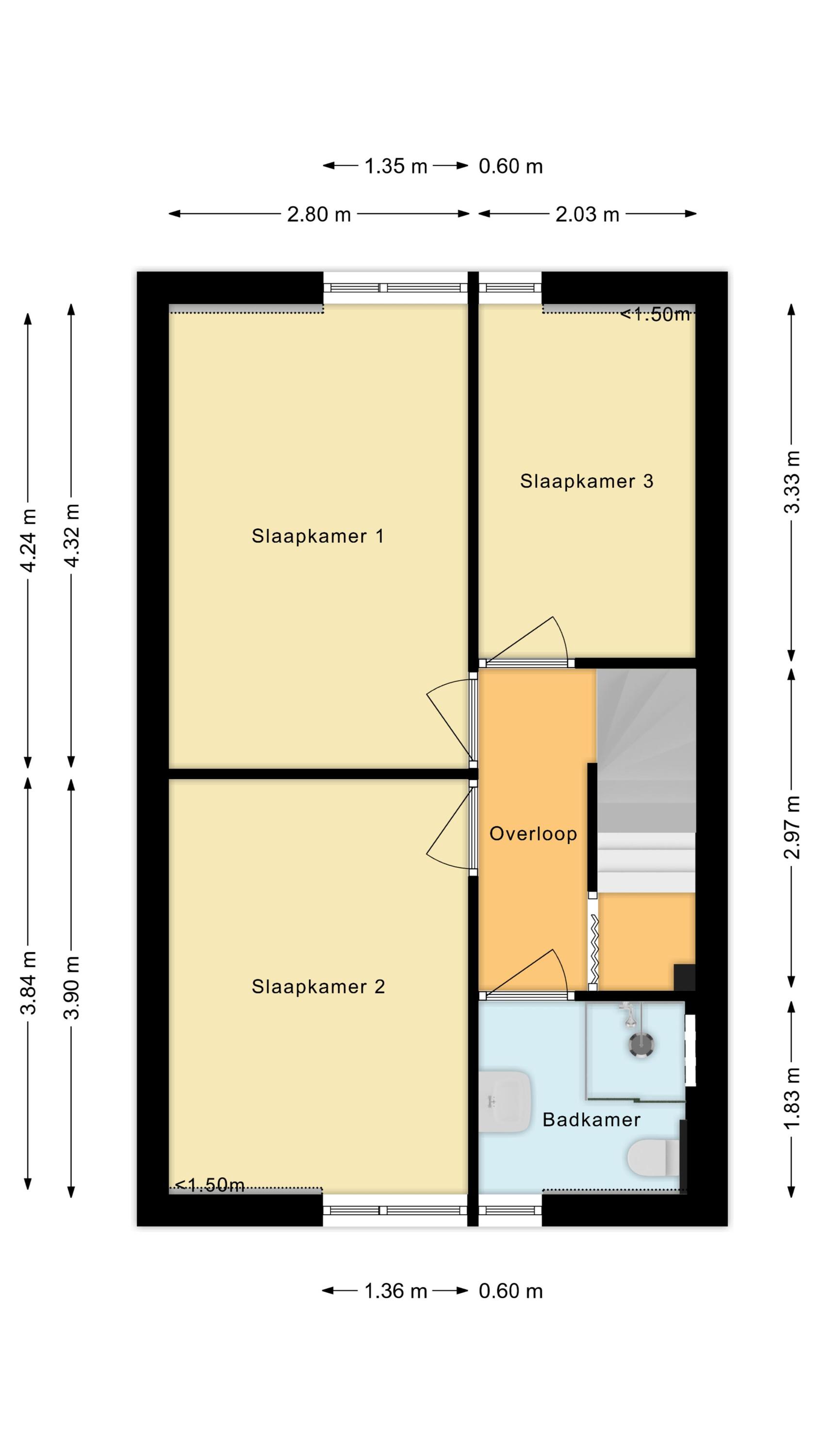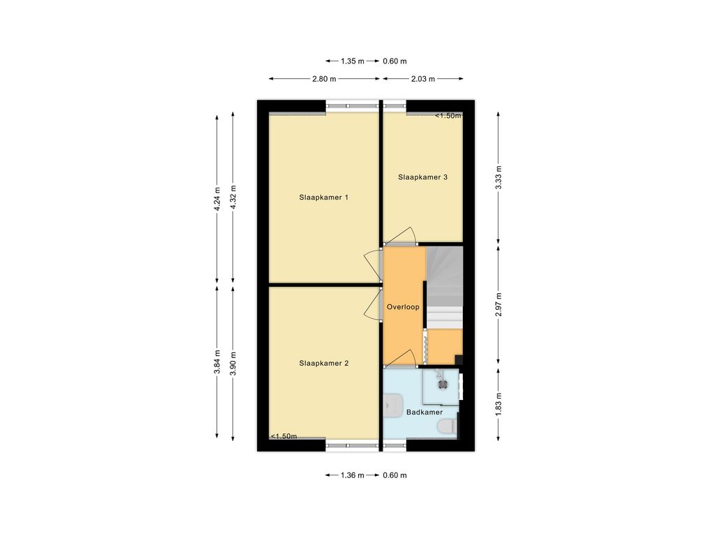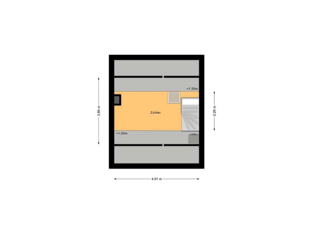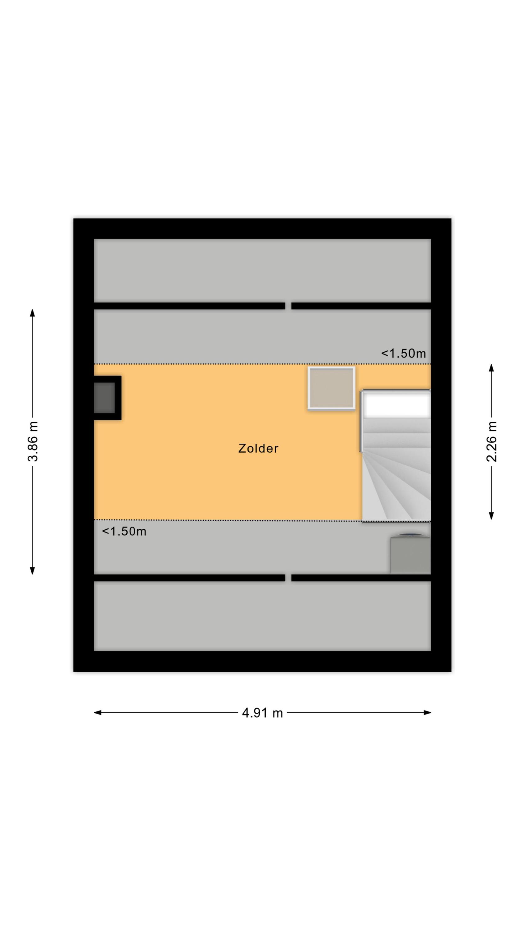 Door het kleine dakraam op zolder (0,45 m2) is deze verdieping nu geen woonoppervlak maar 11 m2 ‘overig inpandige ruimte’. De gehele woning is 92,3 m2.