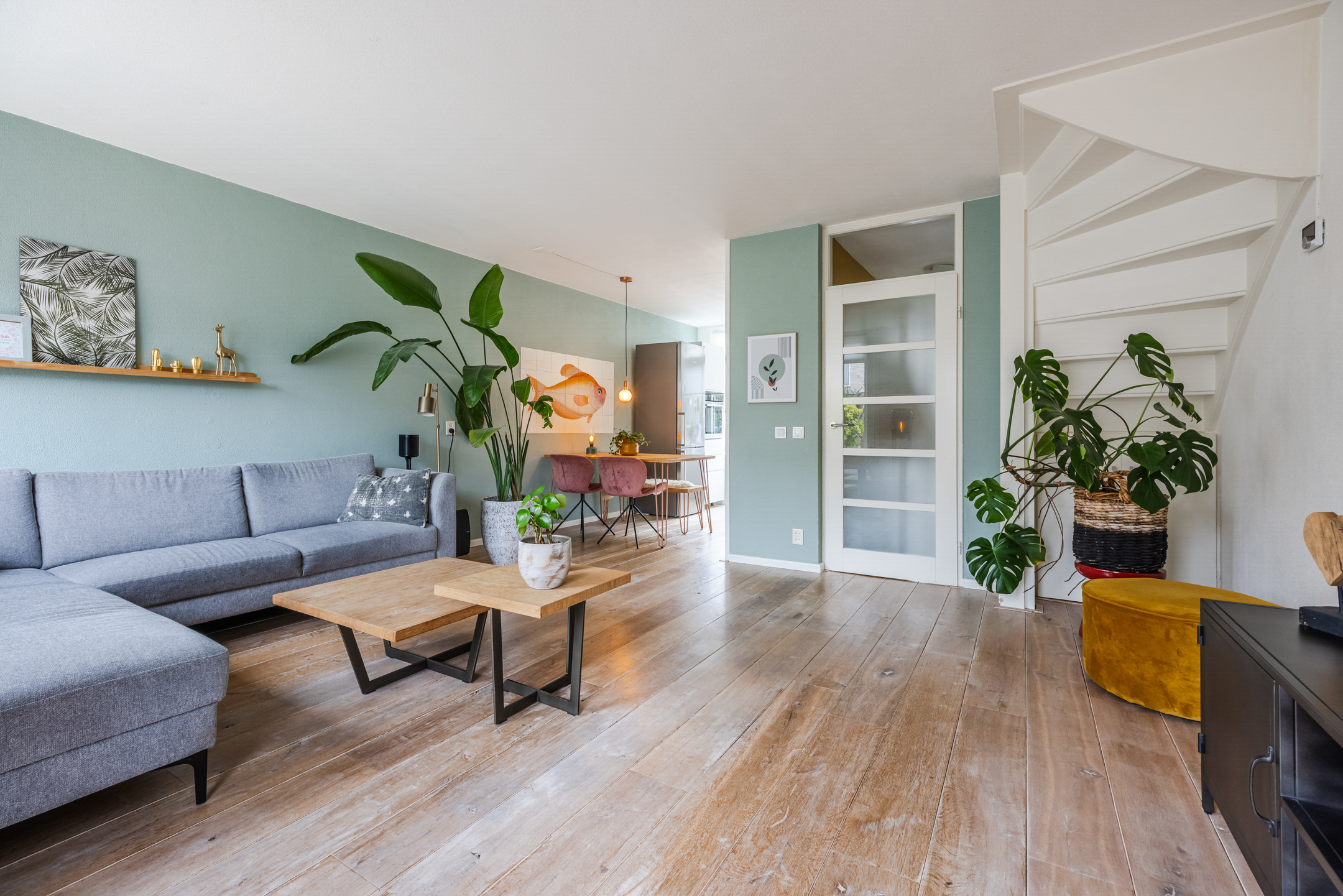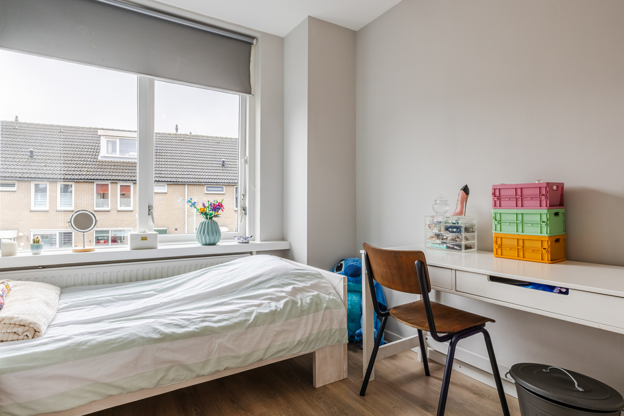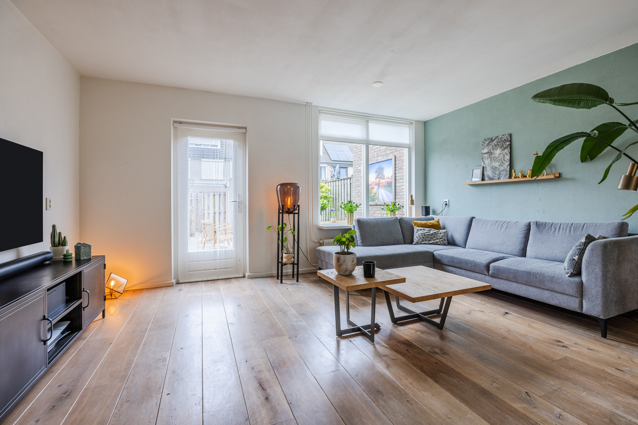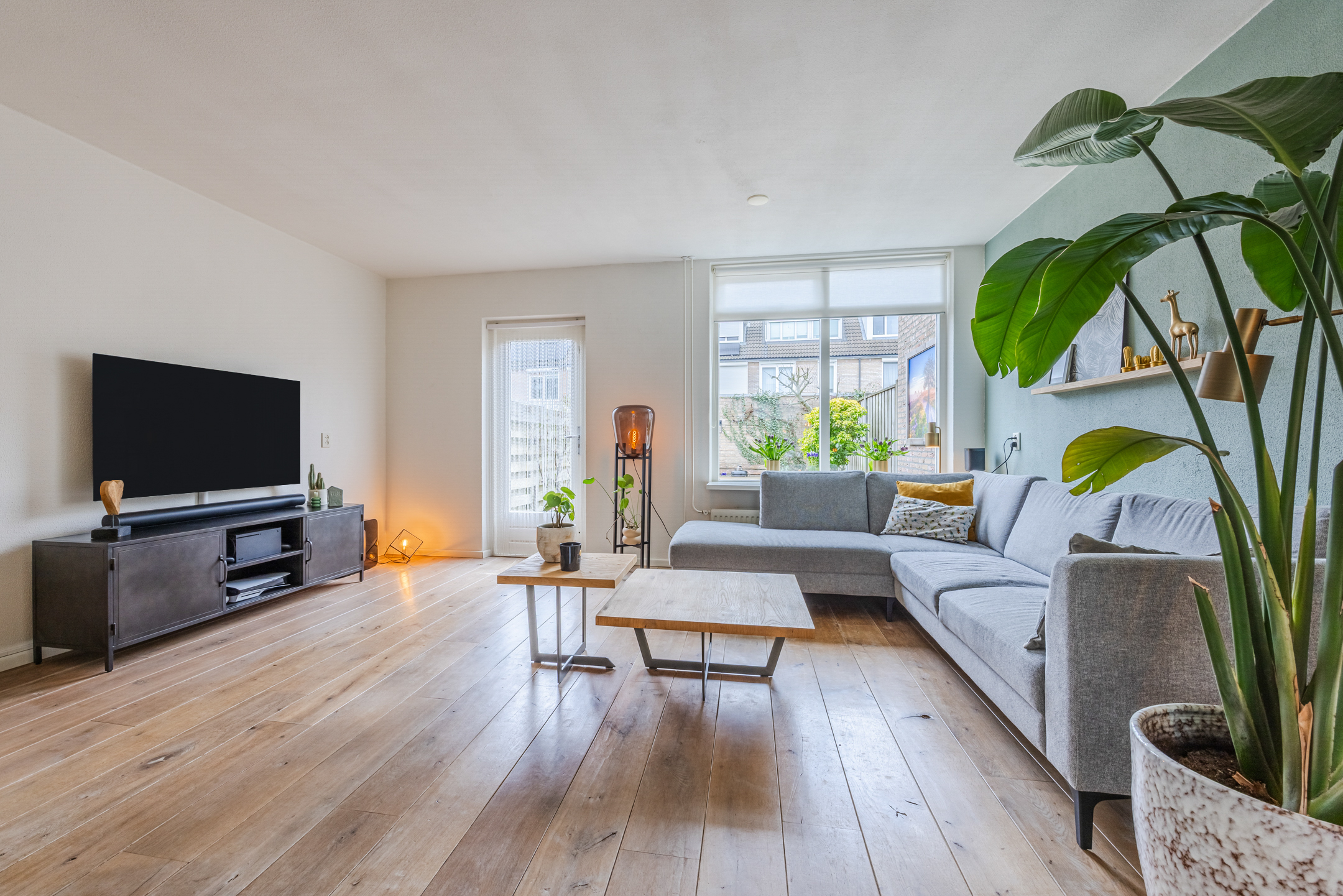 De woning beschikt over een lichte woonkamer met een whitewash houten vloer, een open keuken en vier ruime slaapkamers. De luxe badkamer en het toilet zijn de echte eyecatchers; beide zijn in 2024 in dezelfde moderne stijl vernieuwd.