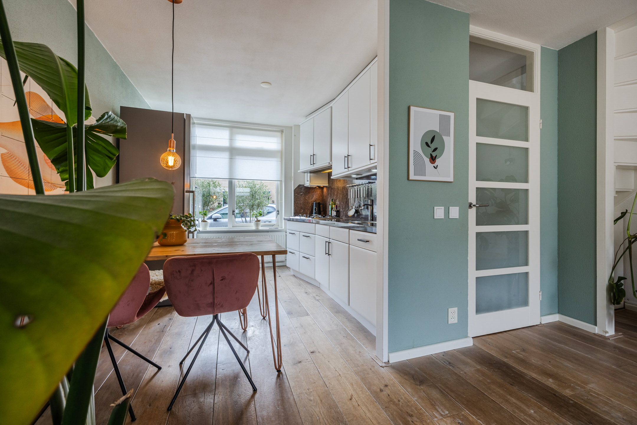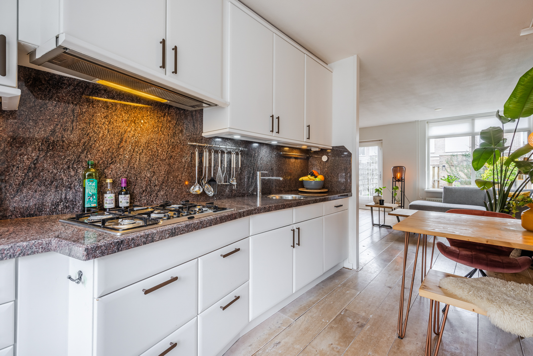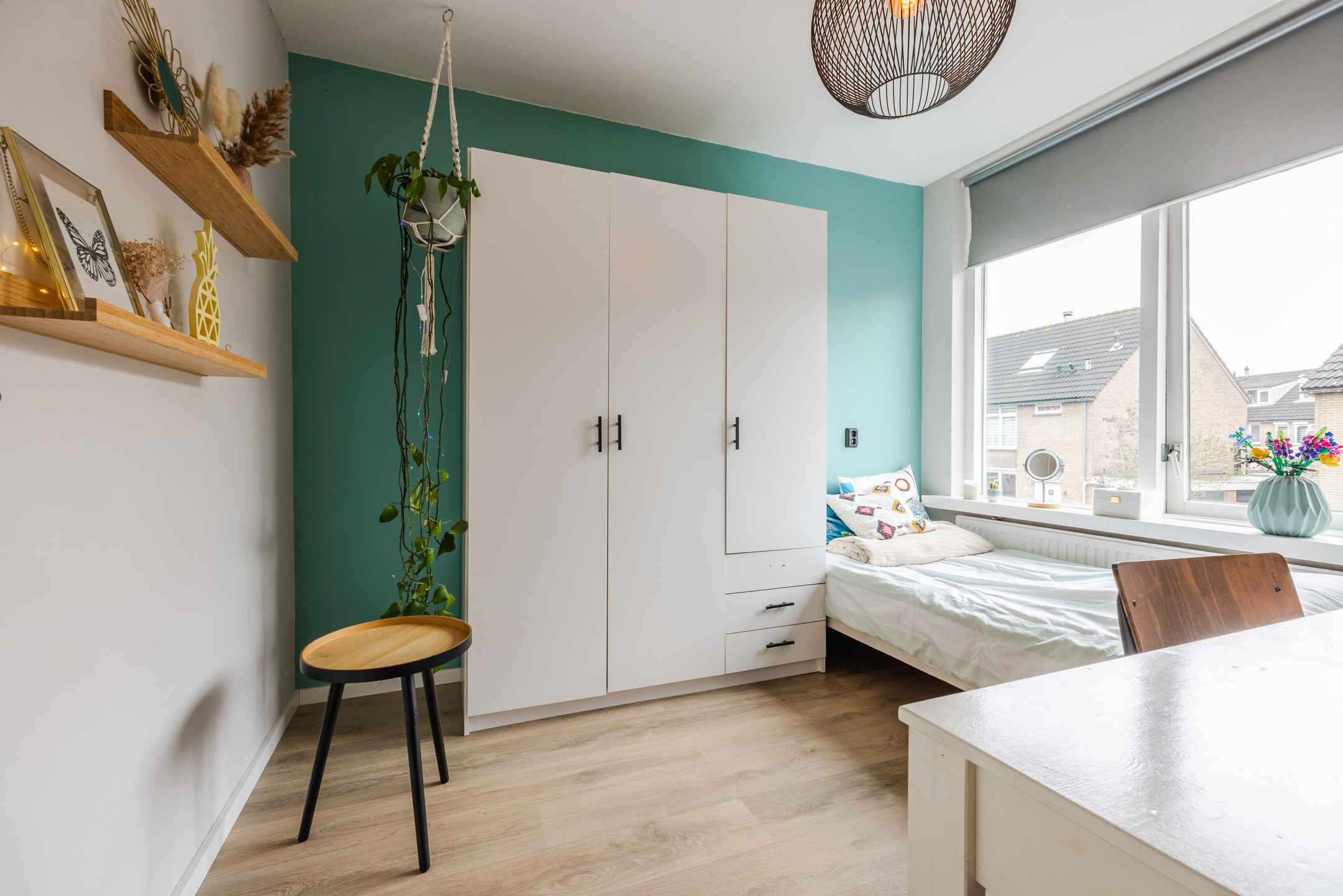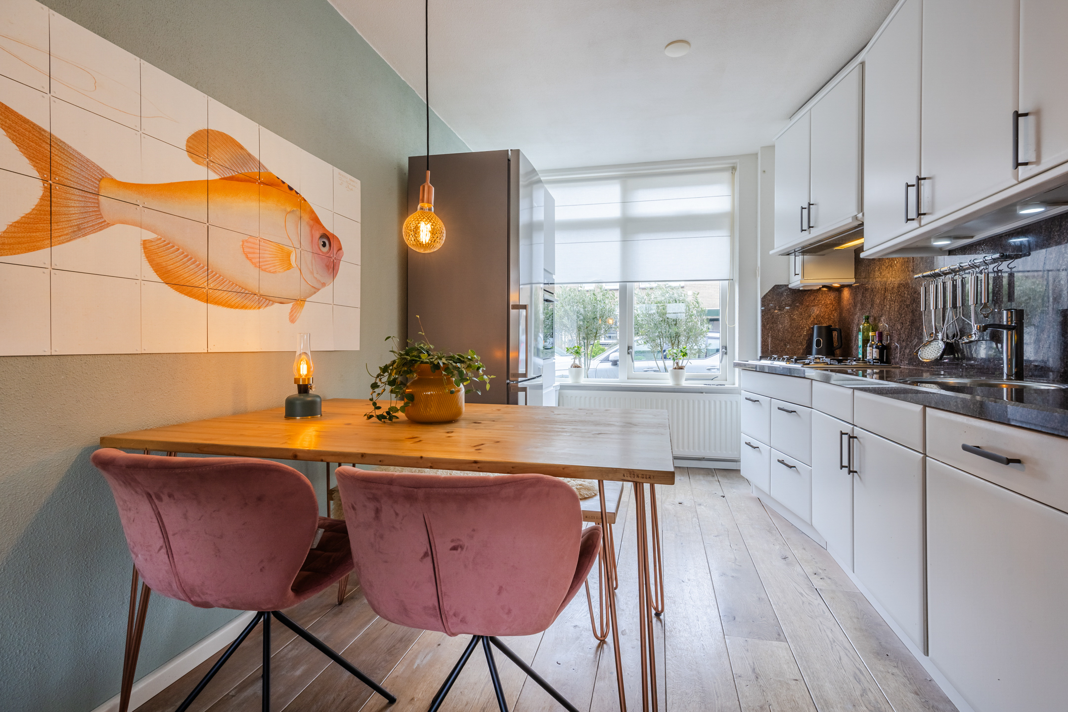 De woning beschikt over een lichte woonkamer met een whitewash houten vloer, een open keuken en vier ruime slaapkamers. De luxe badkamer en het toilet zijn de echte eyecatchers; beide zijn in 2024 in dezelfde moderne stijl vernieuwd.