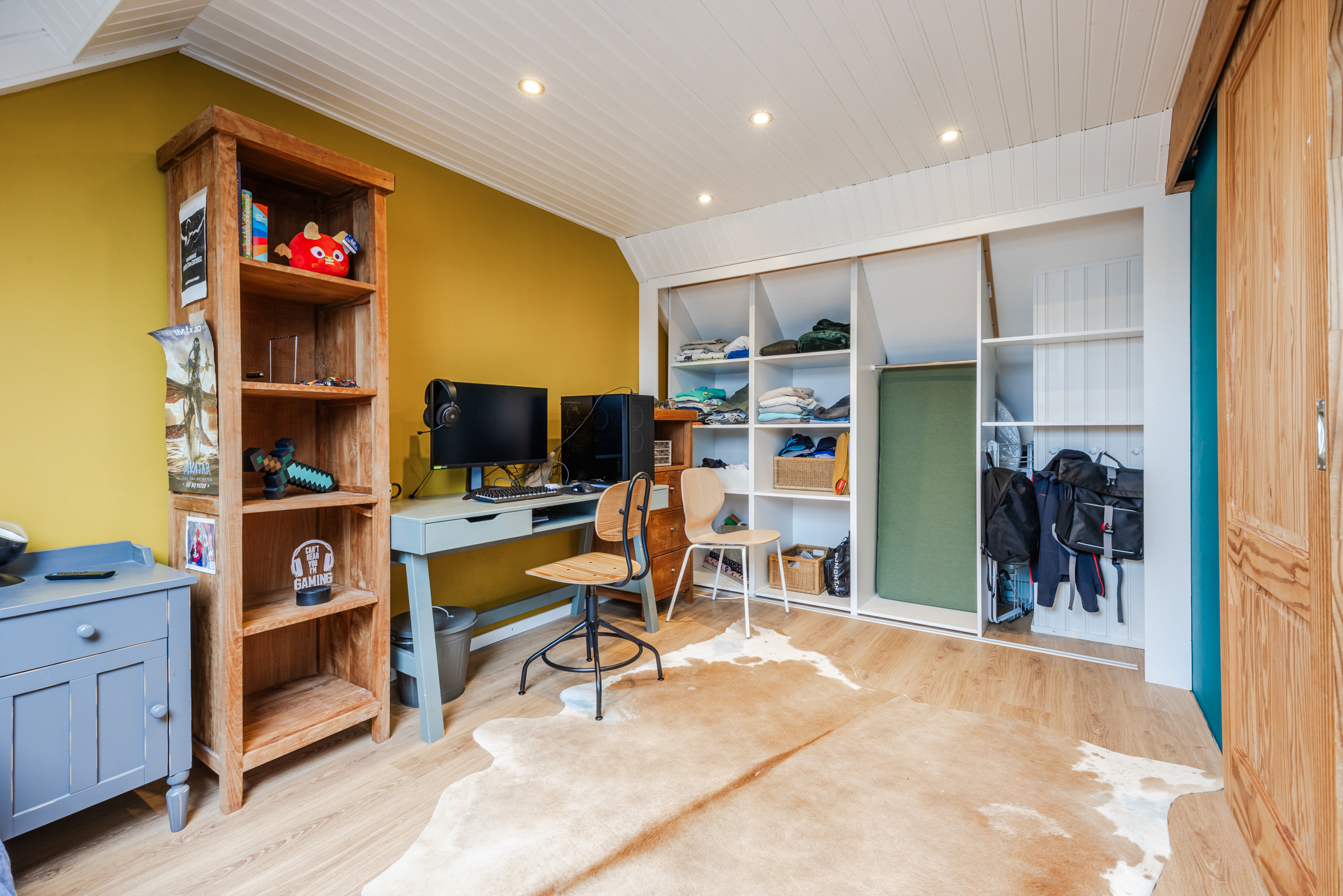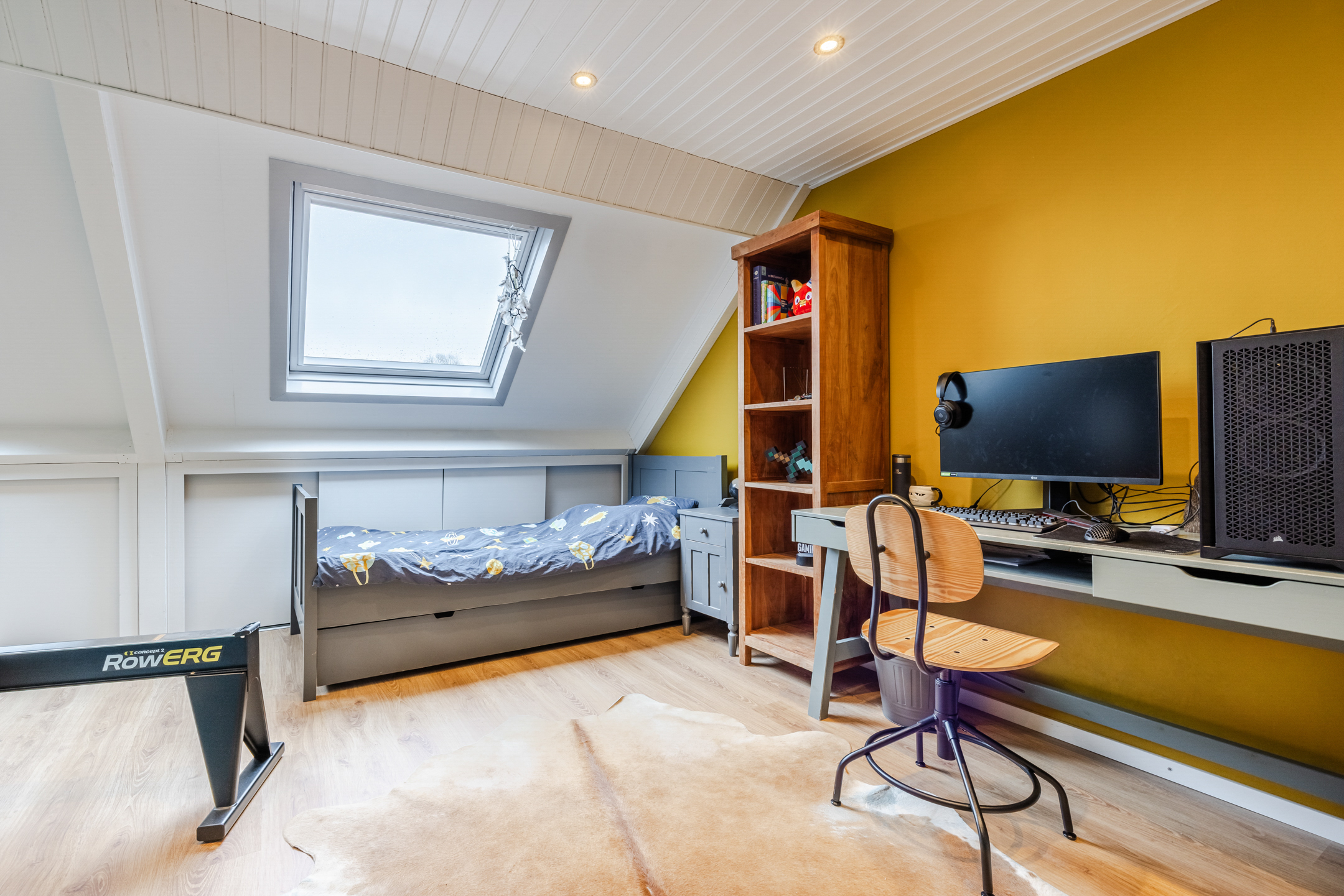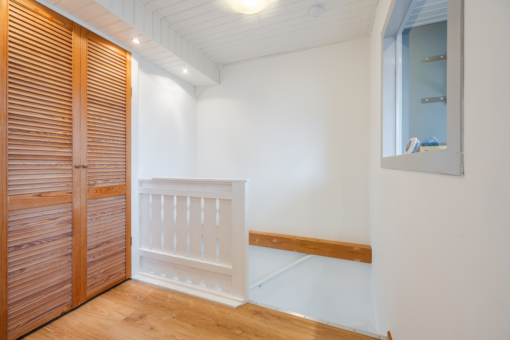 Via de vaste trap bereik je de voorzolder met toegang tot de wasruimte met de witgoedaansluitingen, bergruimte en de opstelplaats van de nieuwe cv-combiketel. Op deze verdieping bevindt zich tevens de ruime vierde slaapkamer met twee grote dakramen en achter de knieschotten is extra bergruimte gecreëerd. Via een vlizotrap op de overloop is er toegang tot de bergvliering.