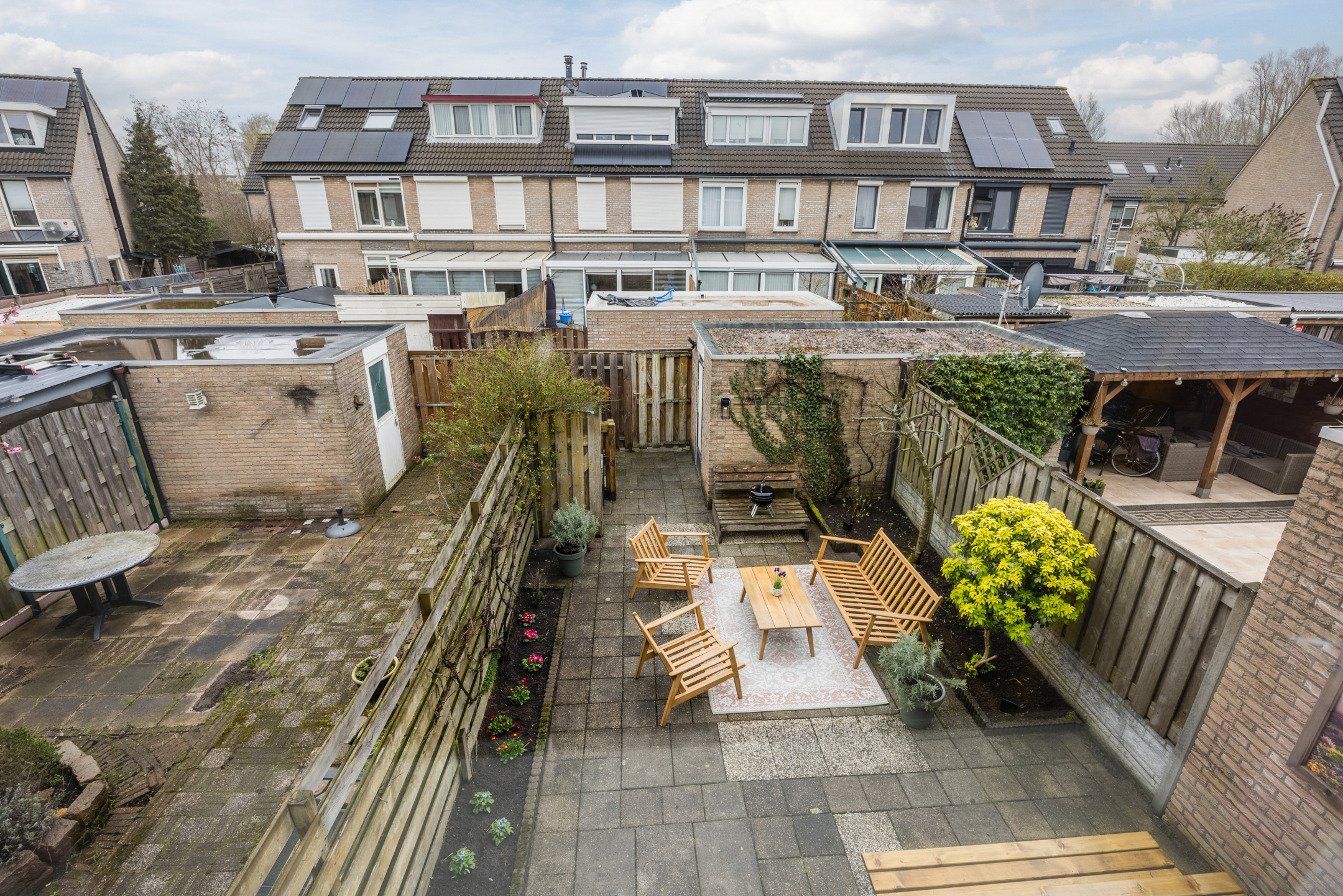 De keurige achtertuin is voorzien van betegeling en plantenborders en er is voldoende ruimte voor een lekker lounge- en tuinset. De tuin is bereikbaar via een achterom en heeft een stenen berging. Aan het einde van de straat is een speeltuintje en extra parkeerplaatsen.