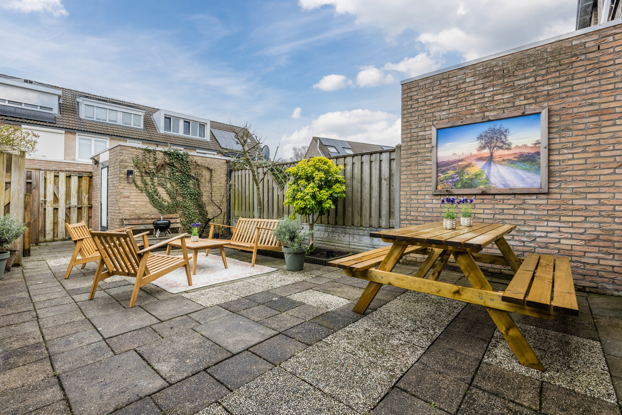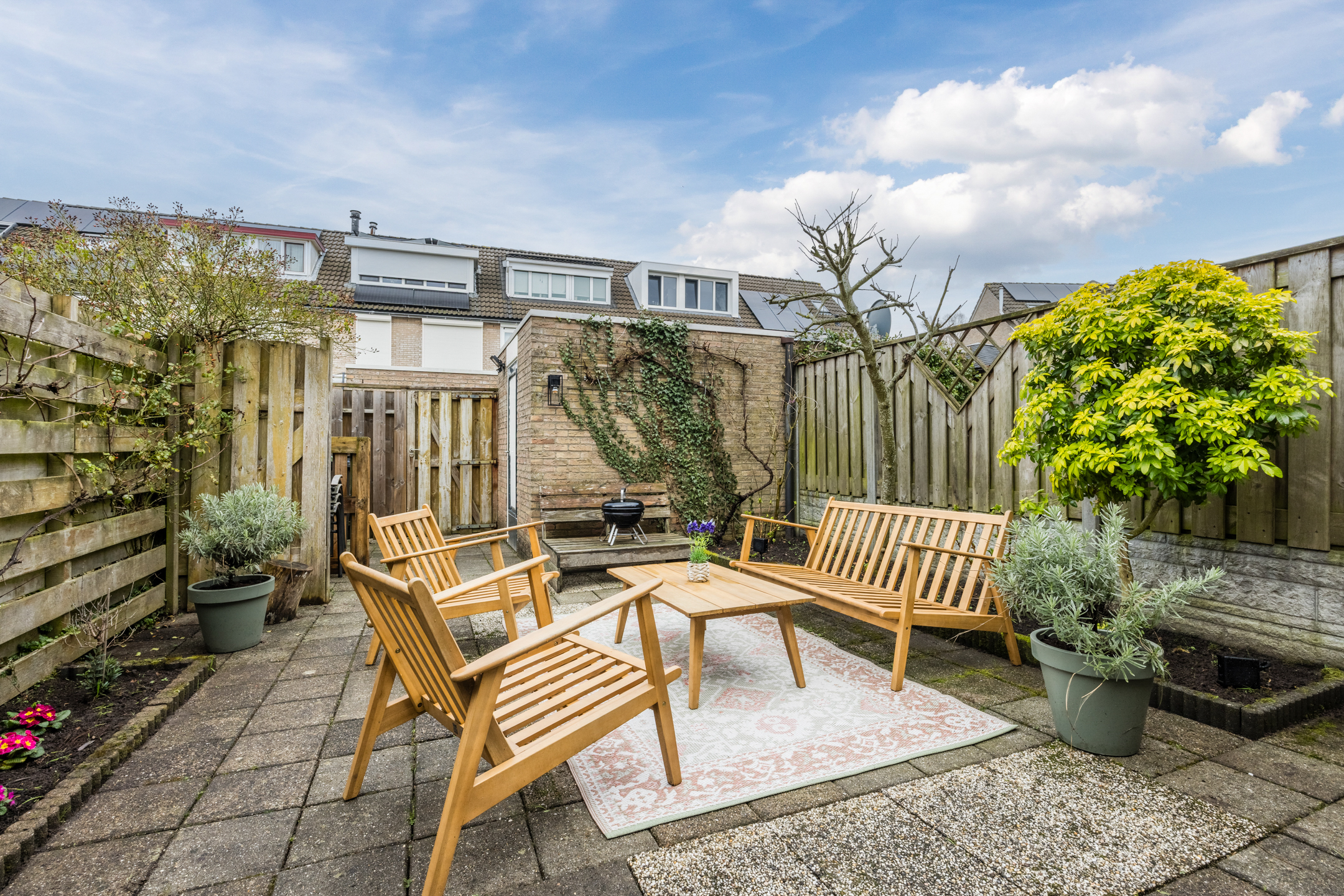 Ook buiten is het genieten; de woning beschikt over een sfeervolle maar onderhoudsvriendelijke achtertuin en ligt op korte afstand van het kooisteebos.