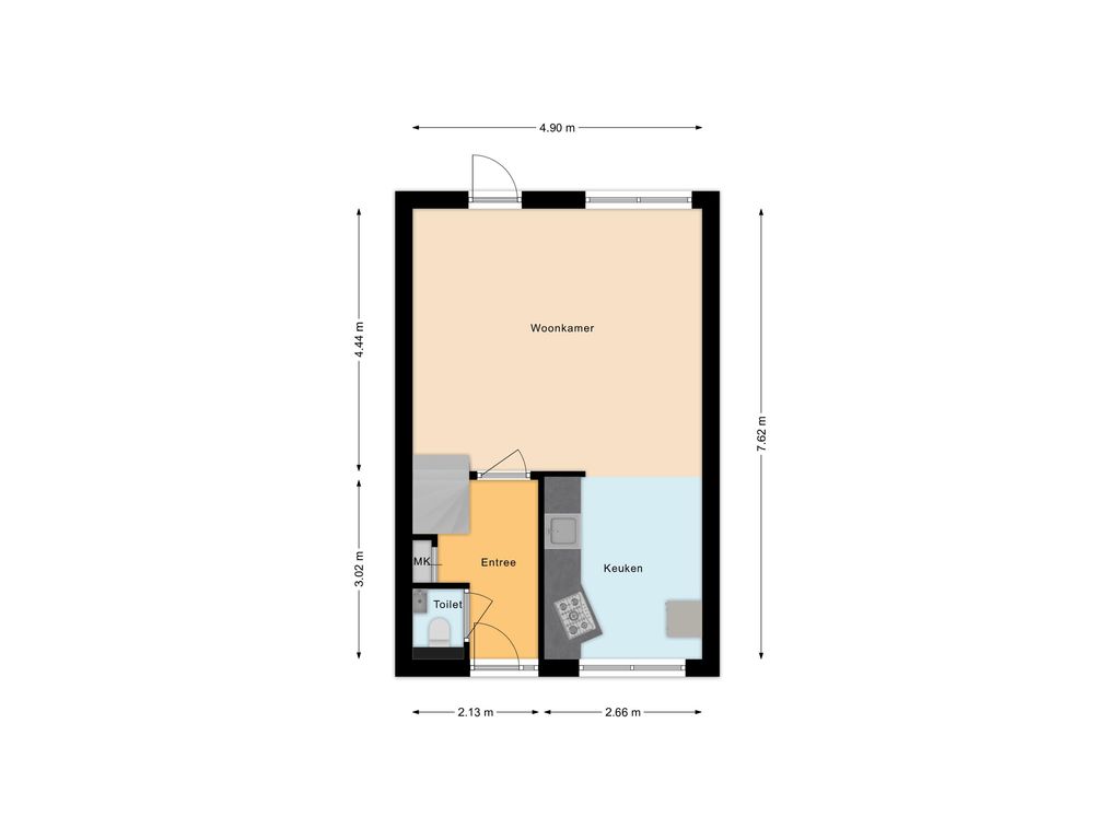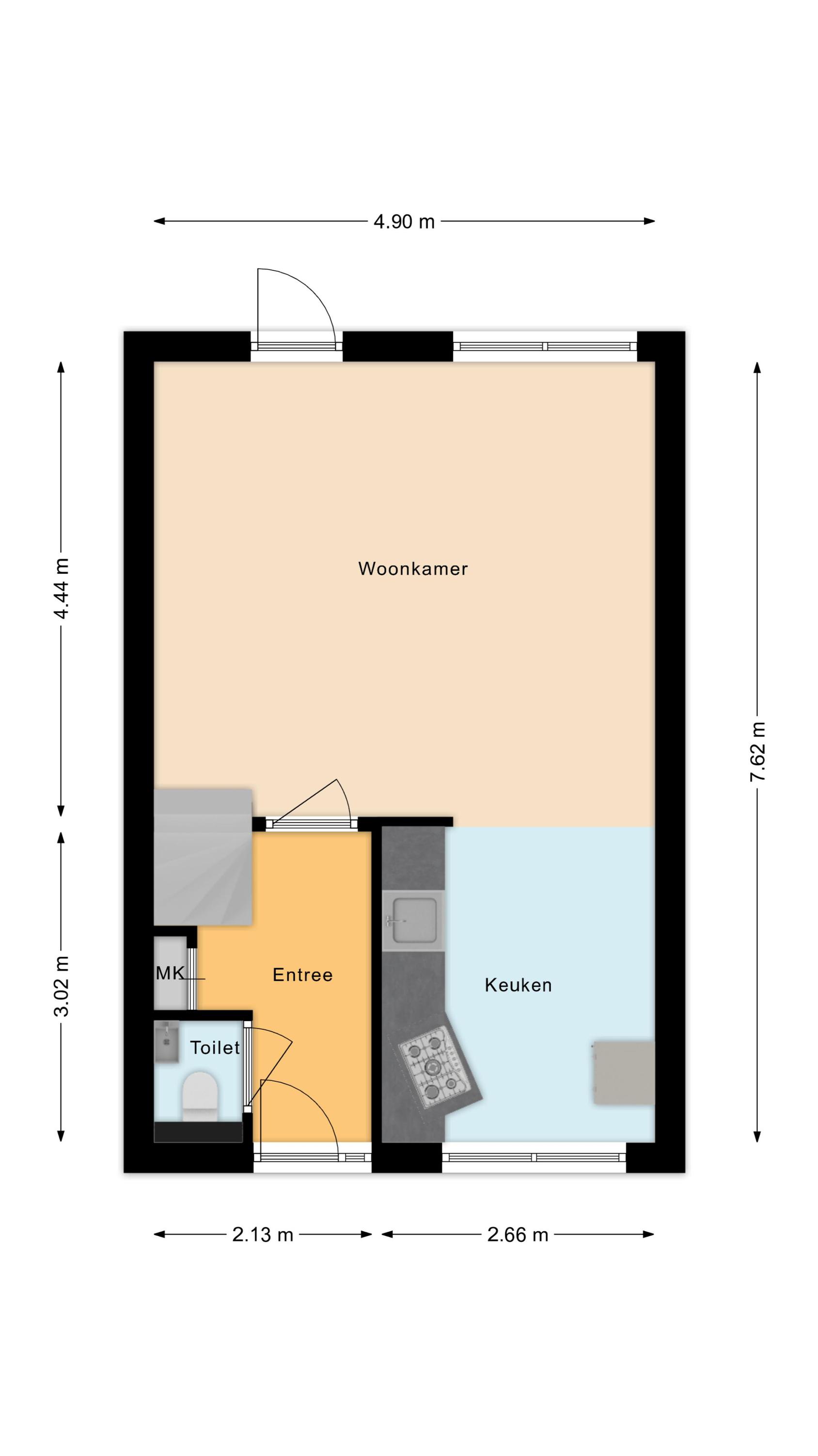 - Woonkamer : 4.44 x 4.90