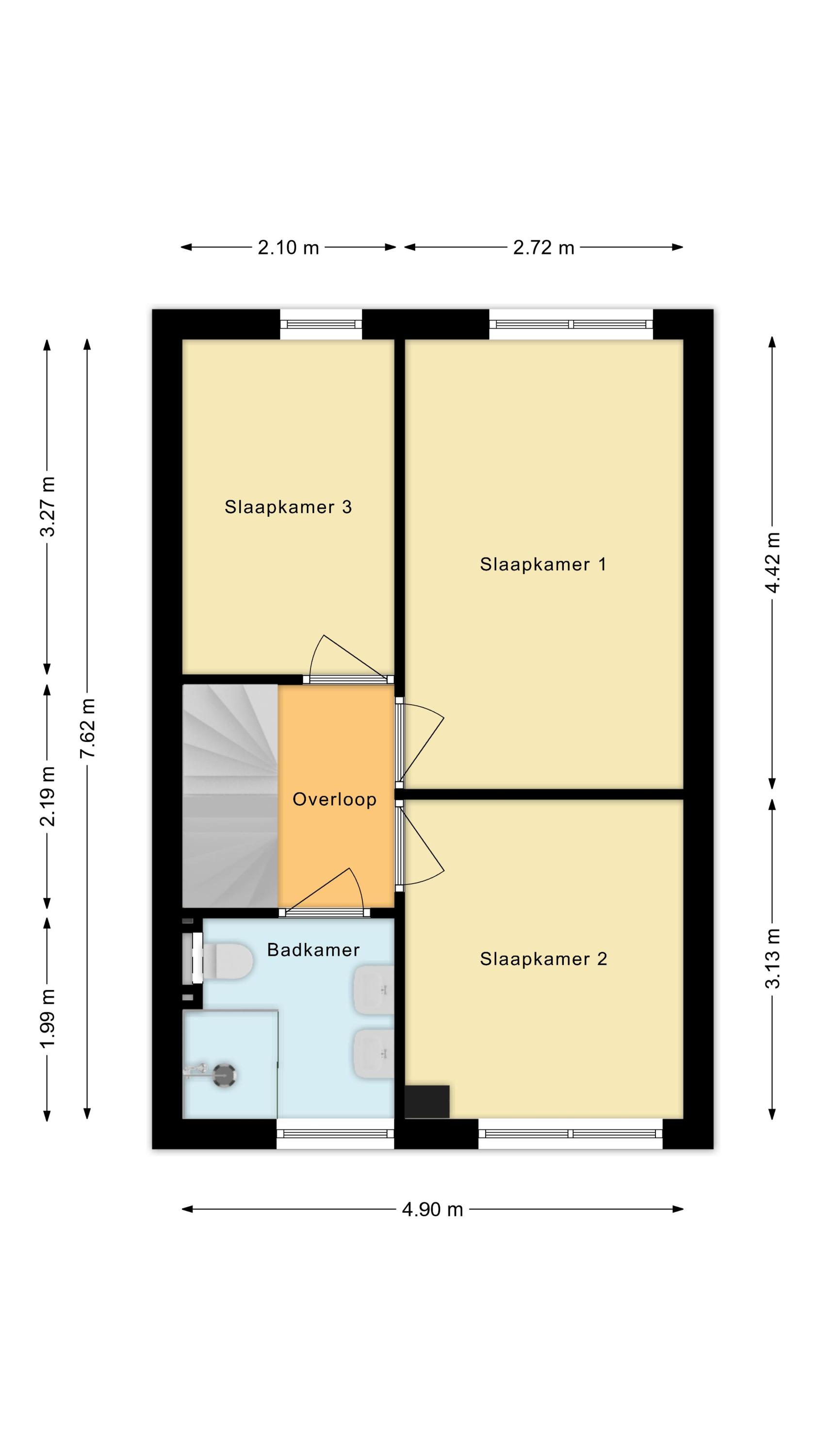 - Badkamer : 1.99 x 2.10