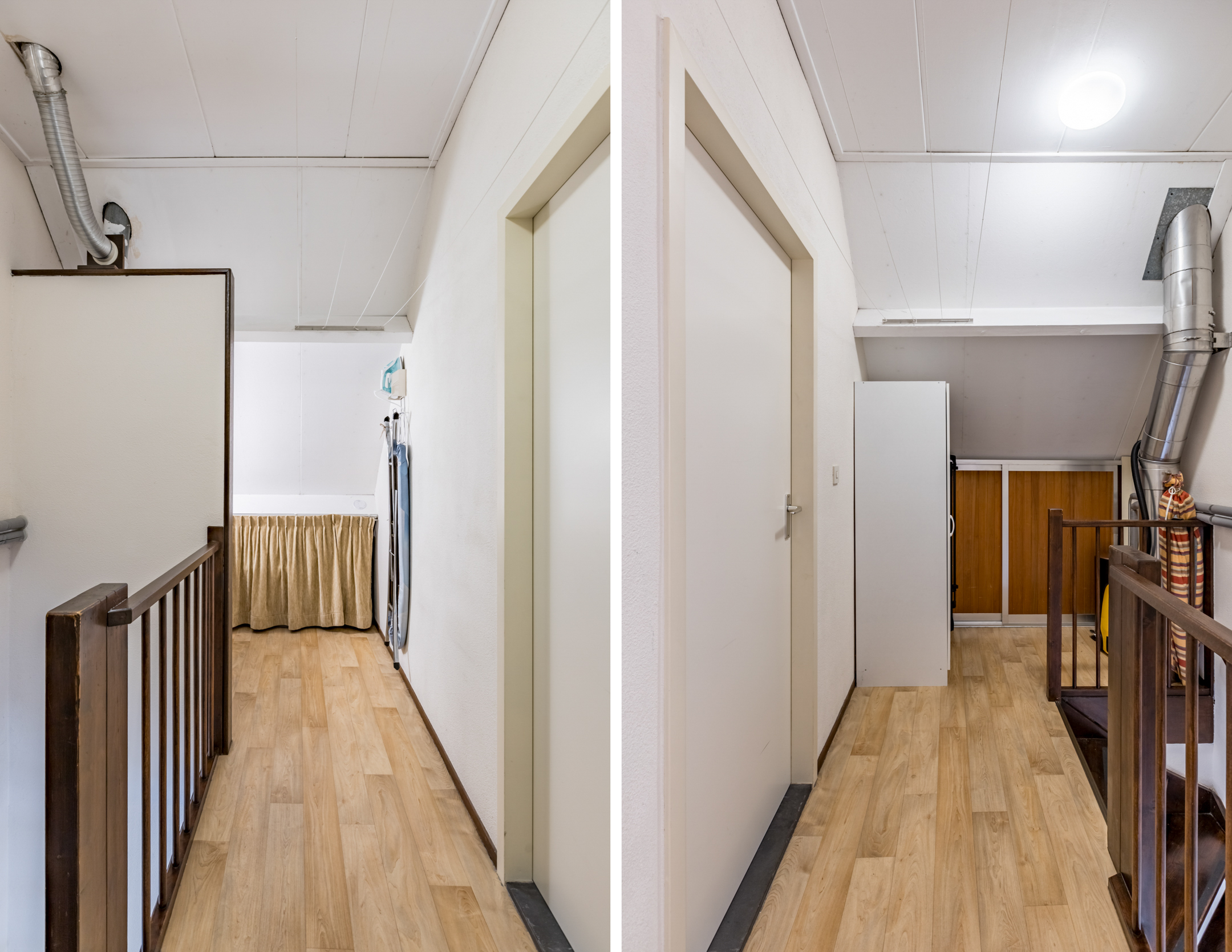 Via een vaste trap bereik je de voorzolder. Hier bevinden zich de witgoedaansluitingen, de unit van de mechanische ventilatie en de opstelplaats van de cv-combiketel (Intergas, 2016).