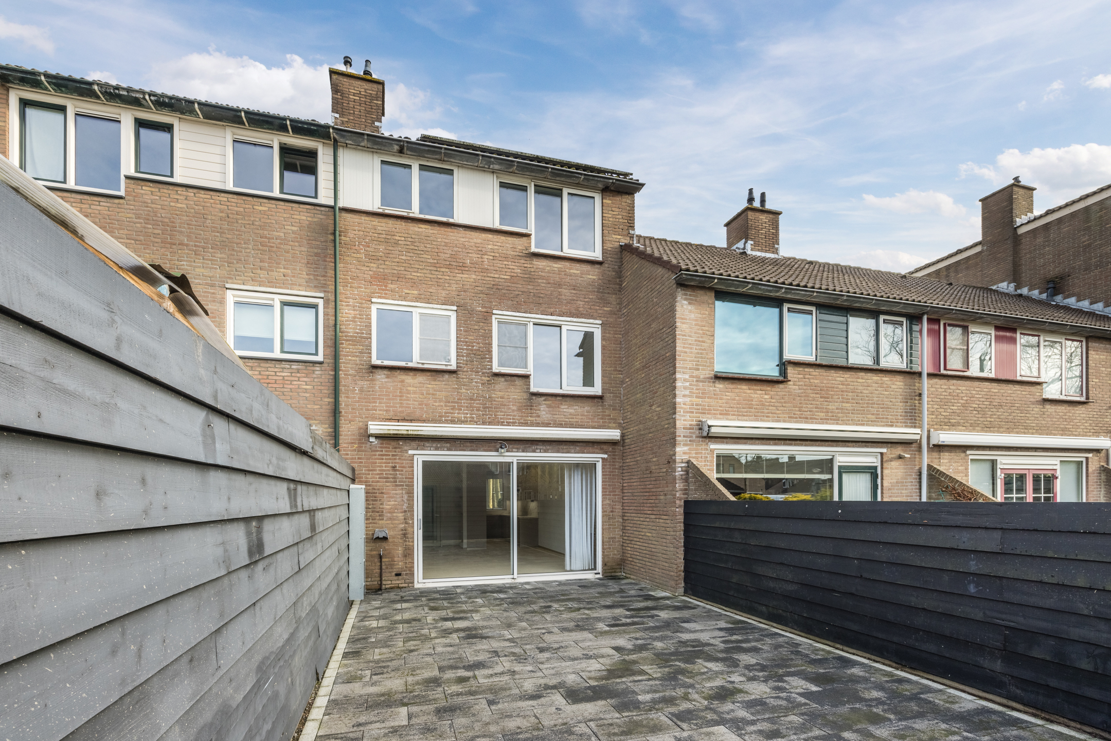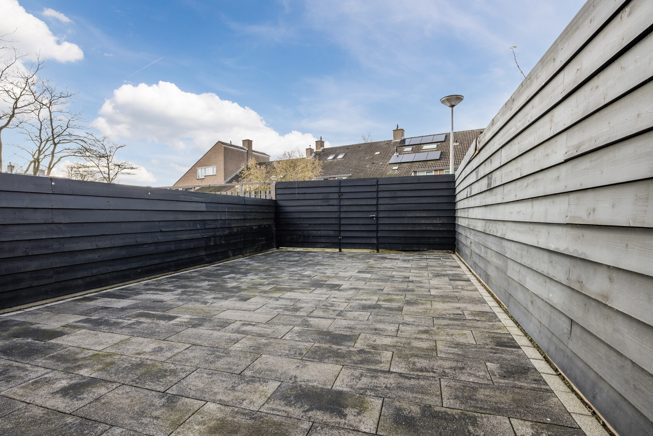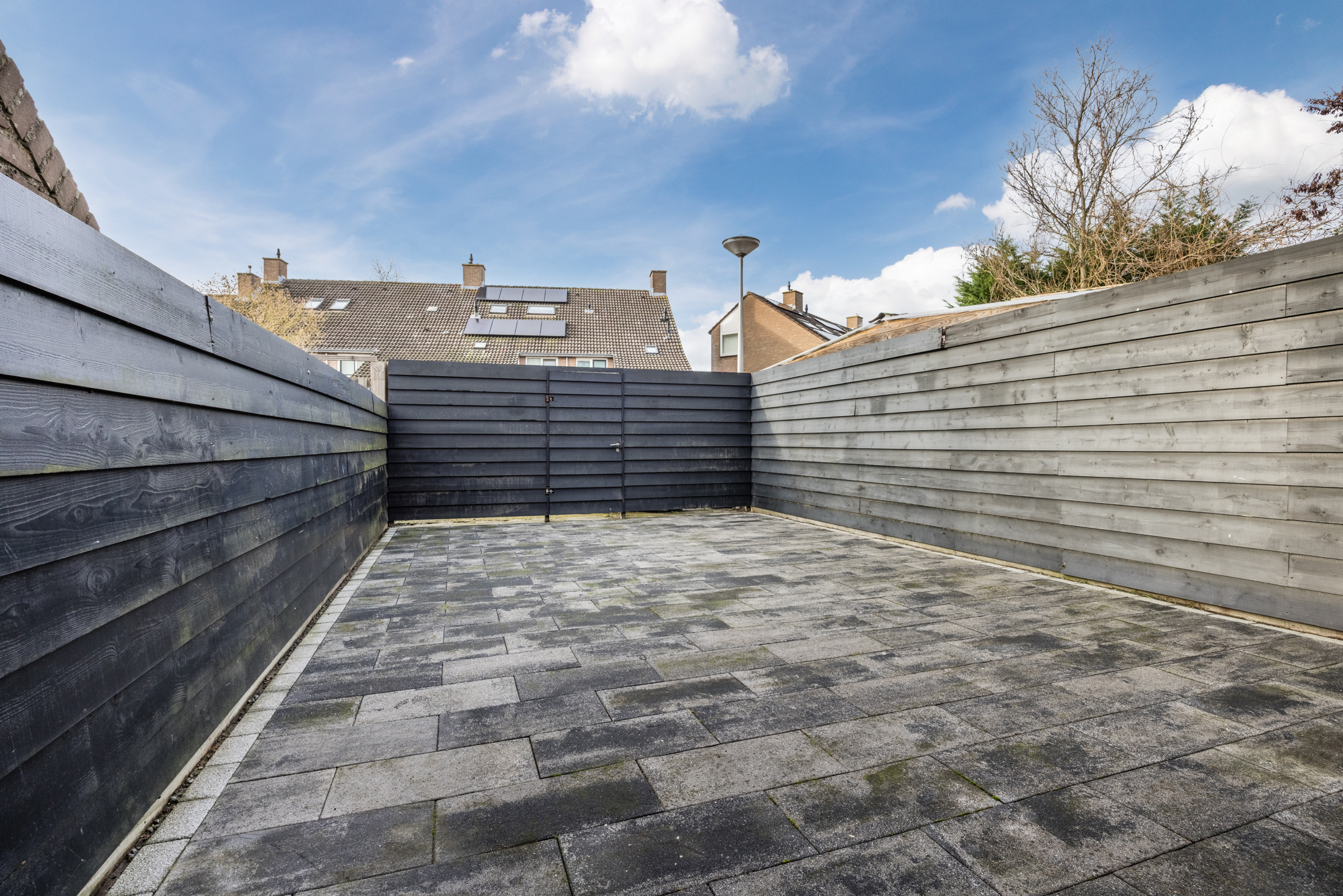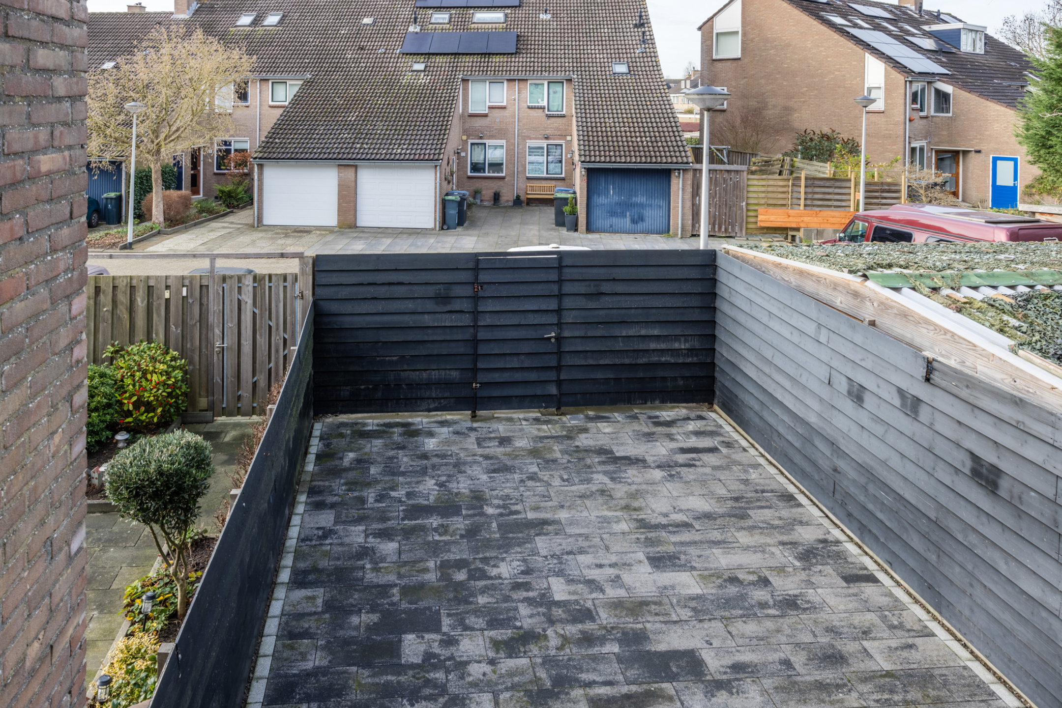 De achtertuin is gunstig gelegen op het westen, waardoor je vrijwel de hele dag van de zon kunt genieten. Het elektrisch bedienbare zonnescherm zorgt voor aangename schaduw op warme dagen. De tuin is onderhoudsvriendelijk aangelegd, volledig bestraat en is bereikbaar via een achterom.