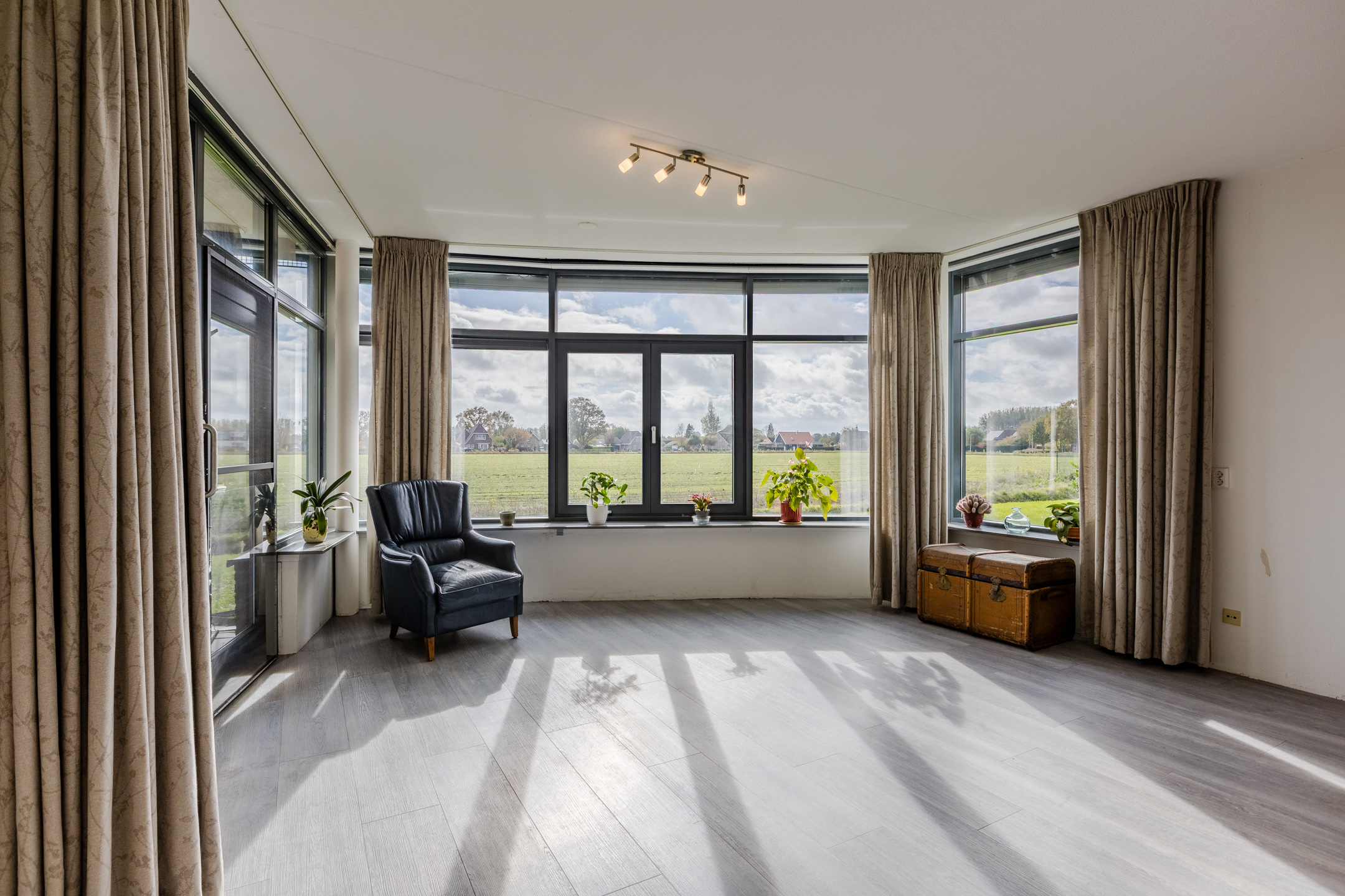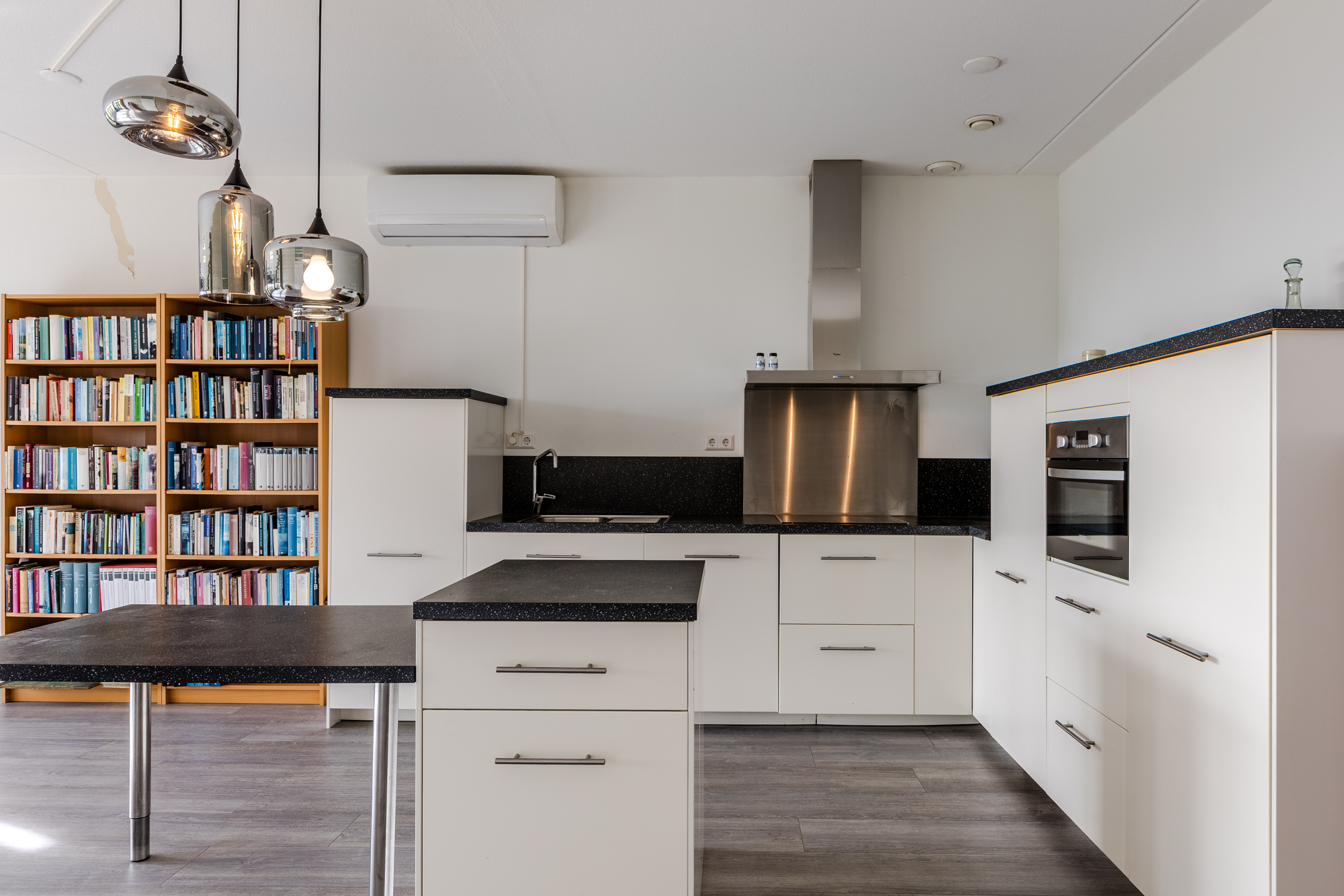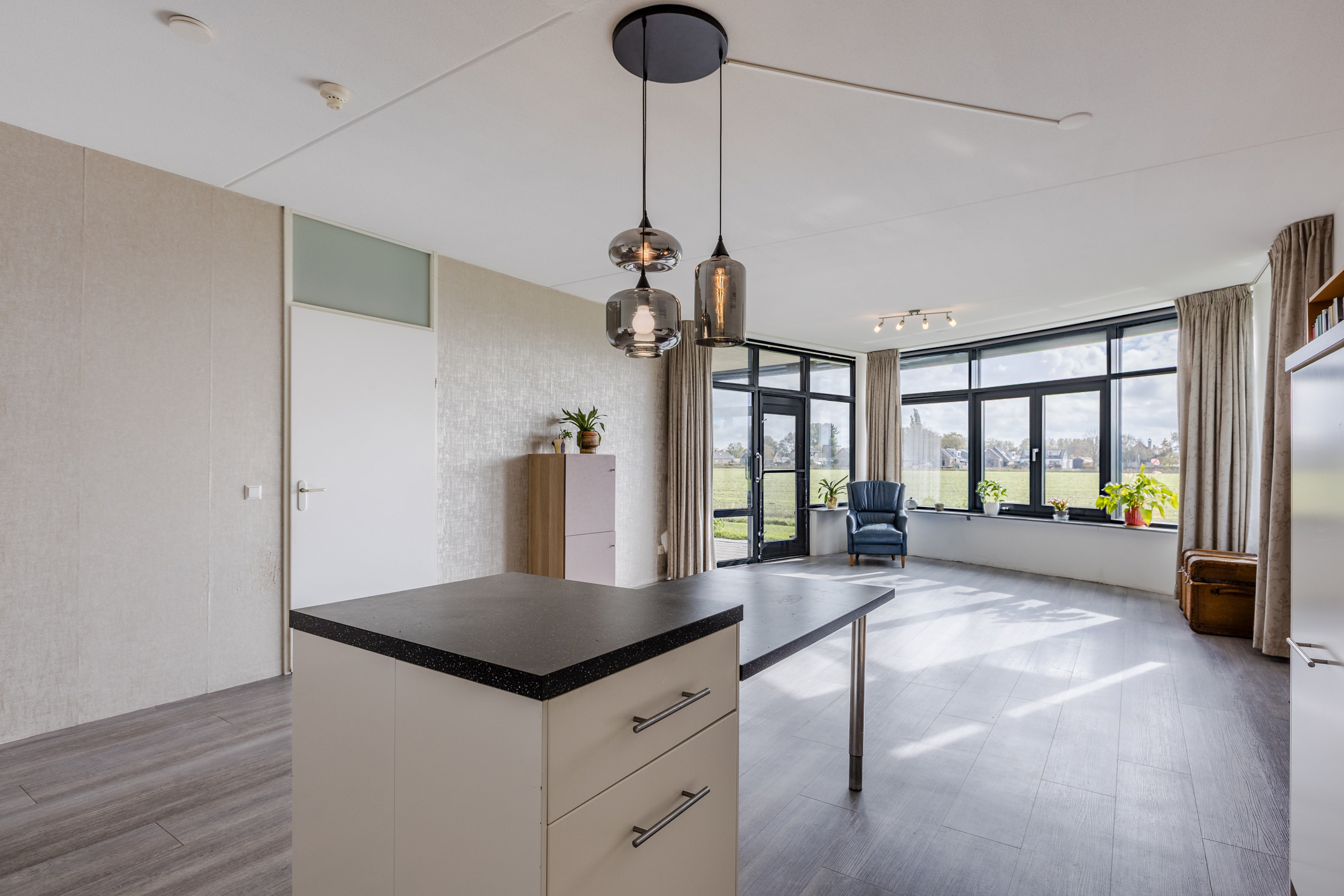 De royale woonkamer is aangenaam licht dankzij de grote raampartij met mooi uitzicht over het polderlandschap. De open keuken heeft inbouwapparatuur als: een inductiekookplaat, afzuigkap, combimagnetron, koelkast, vriezer en een vaatwasser.