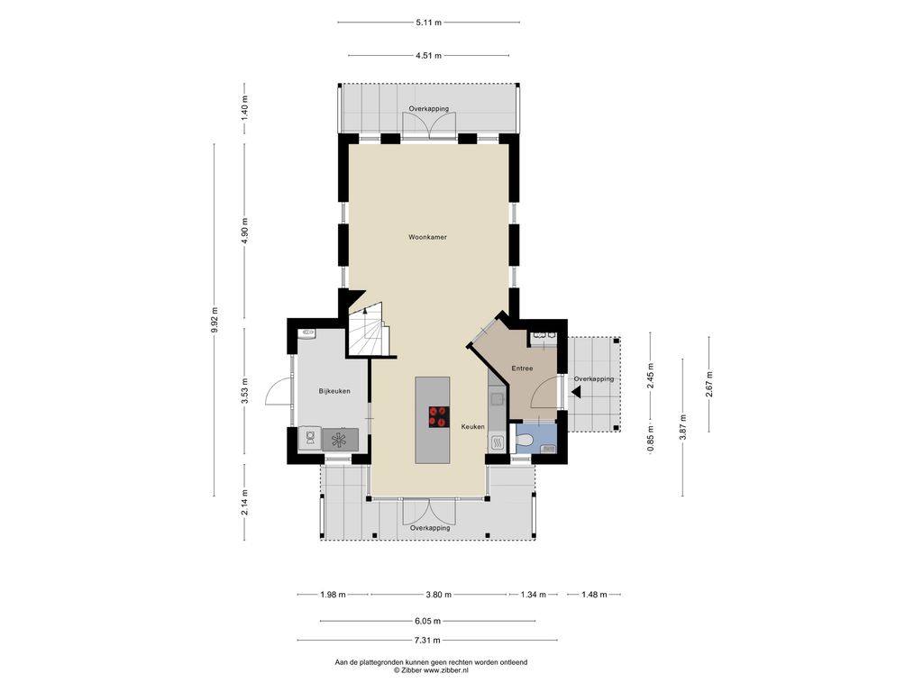 - Woonkamer: 6.05 x 4.51