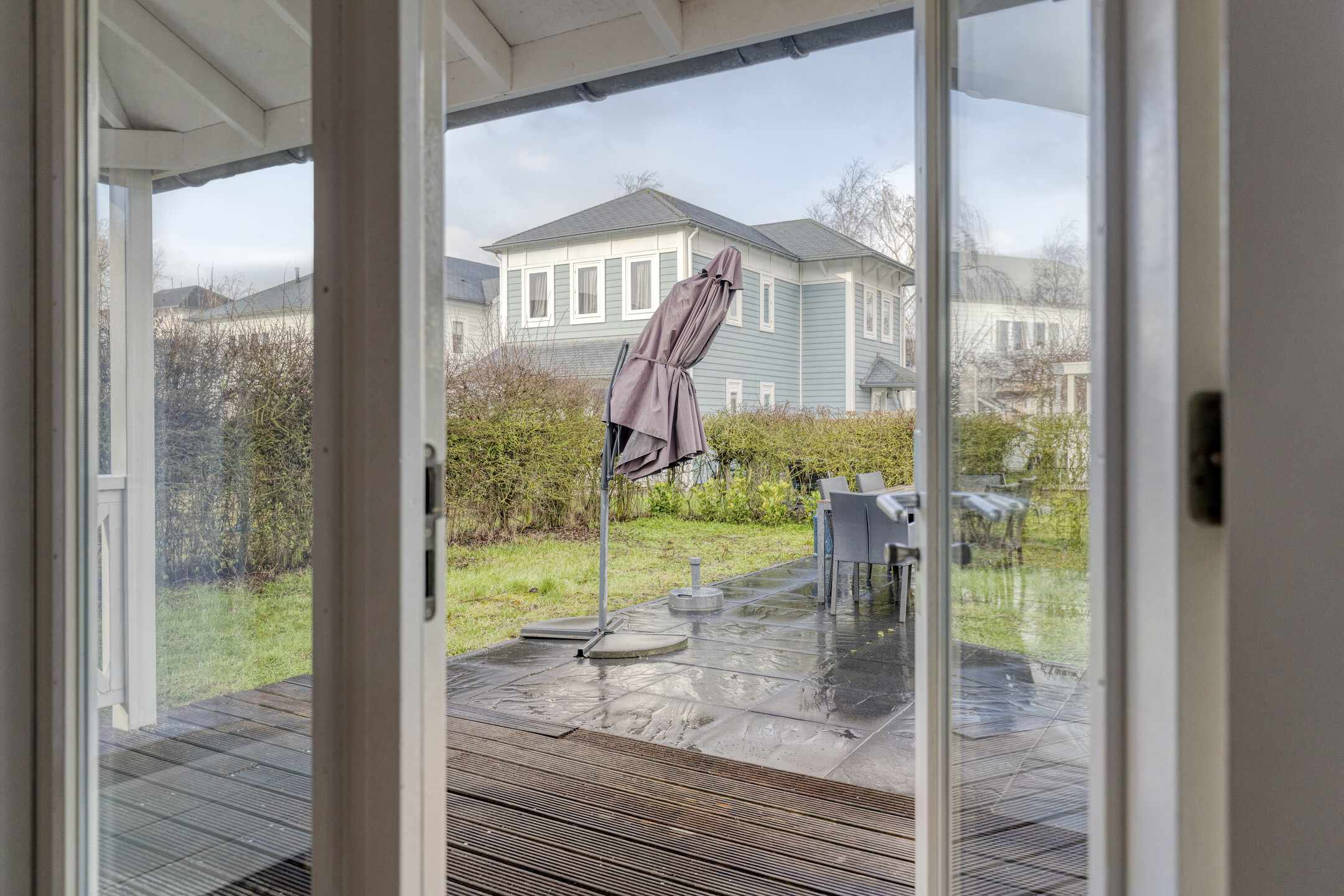 Afgesloten park d.m.v. slagboom.