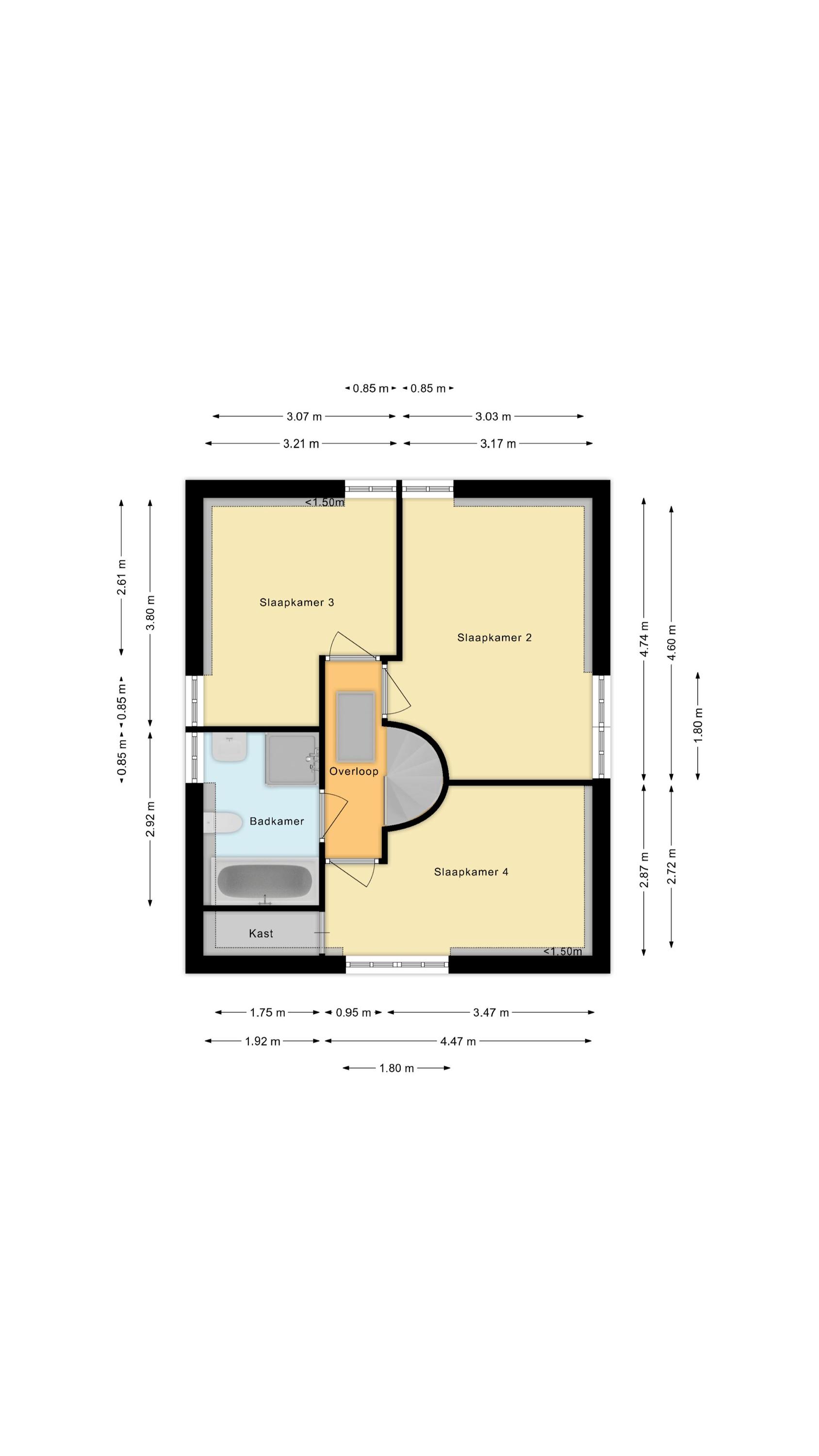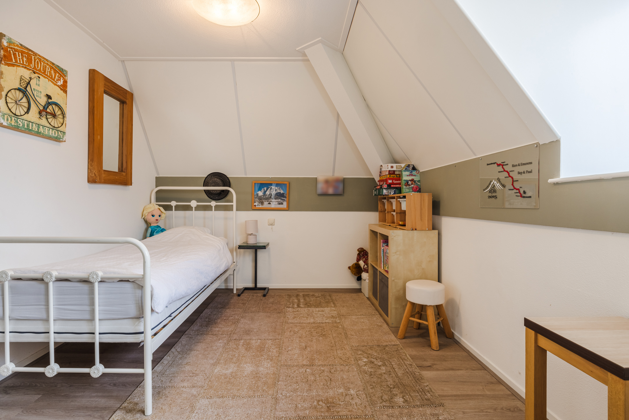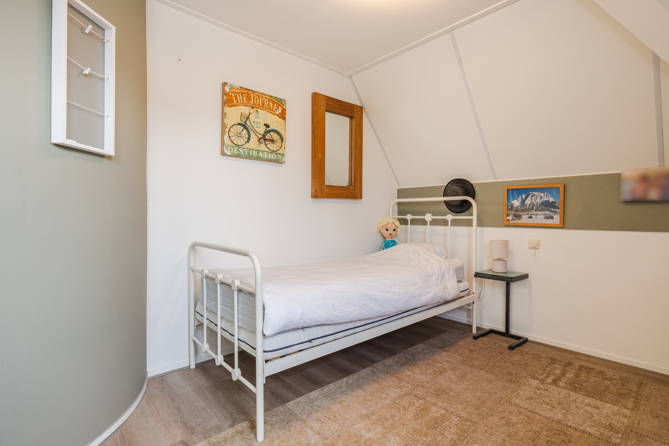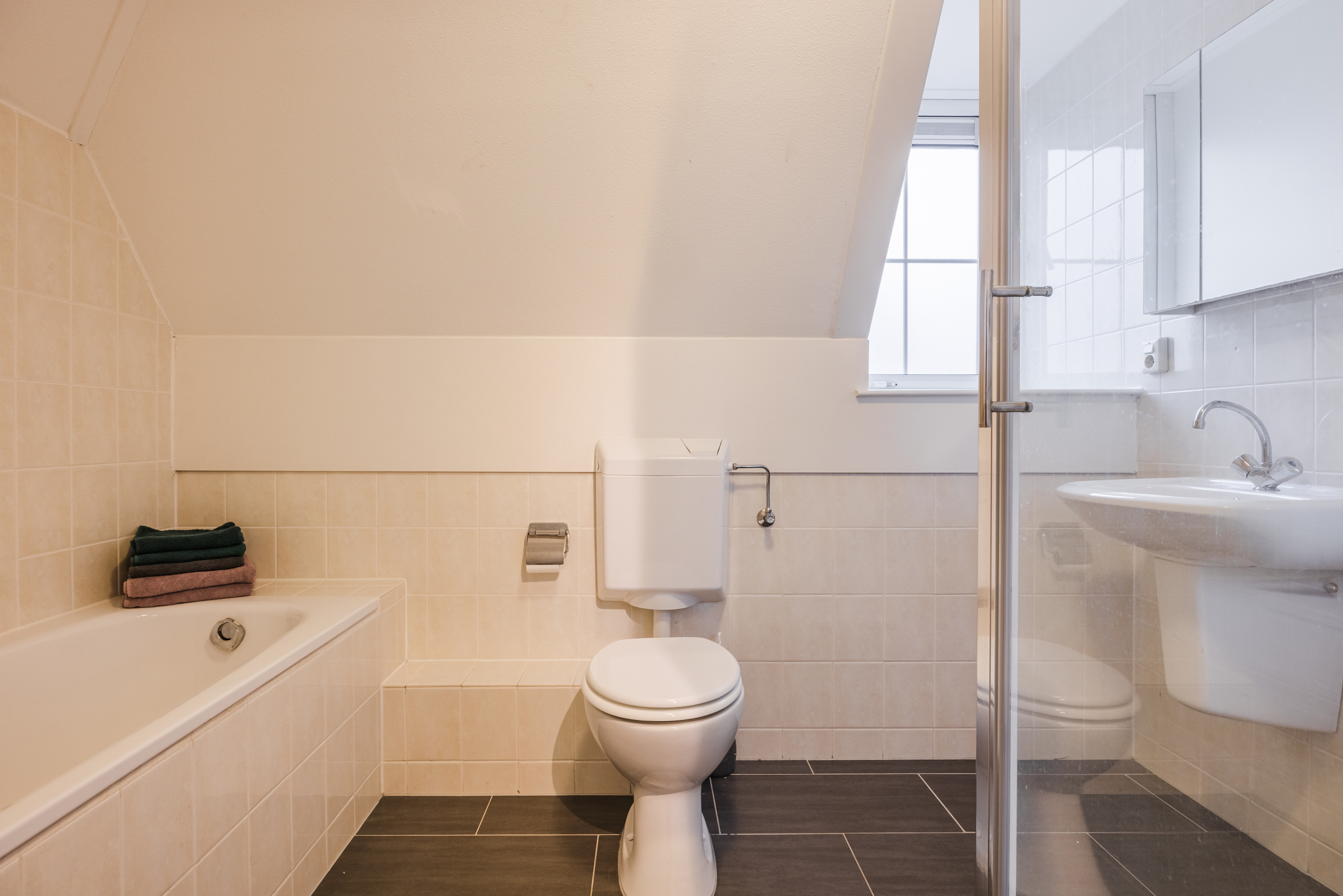 Alle 3 de slaapkamers zijn goed van formaat en hebben een laminaatvloer welke over de gehele verdieping is doorgelegd. De complete badkamer is ingericht met een ligbad, toilet, wastafel en een douche.