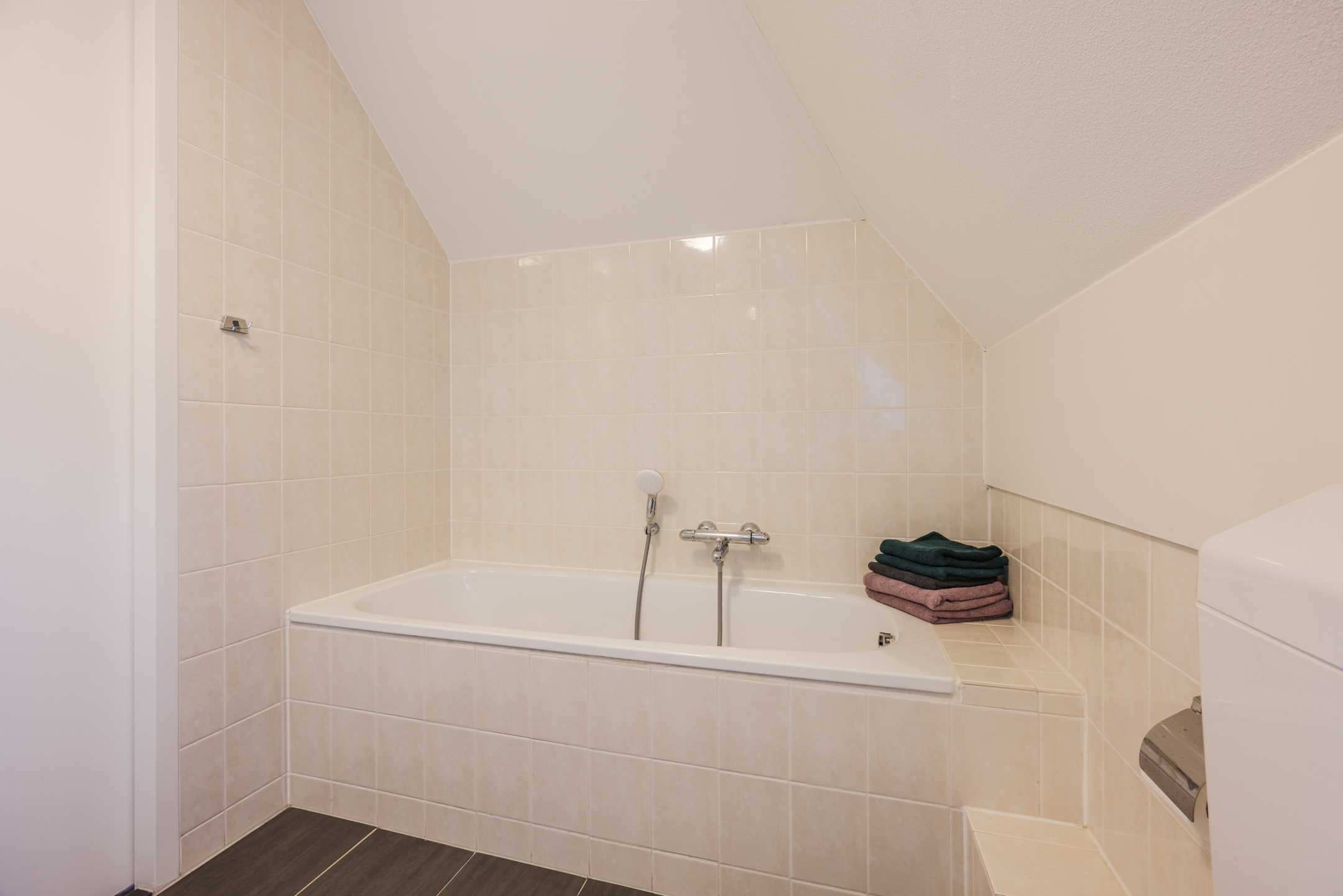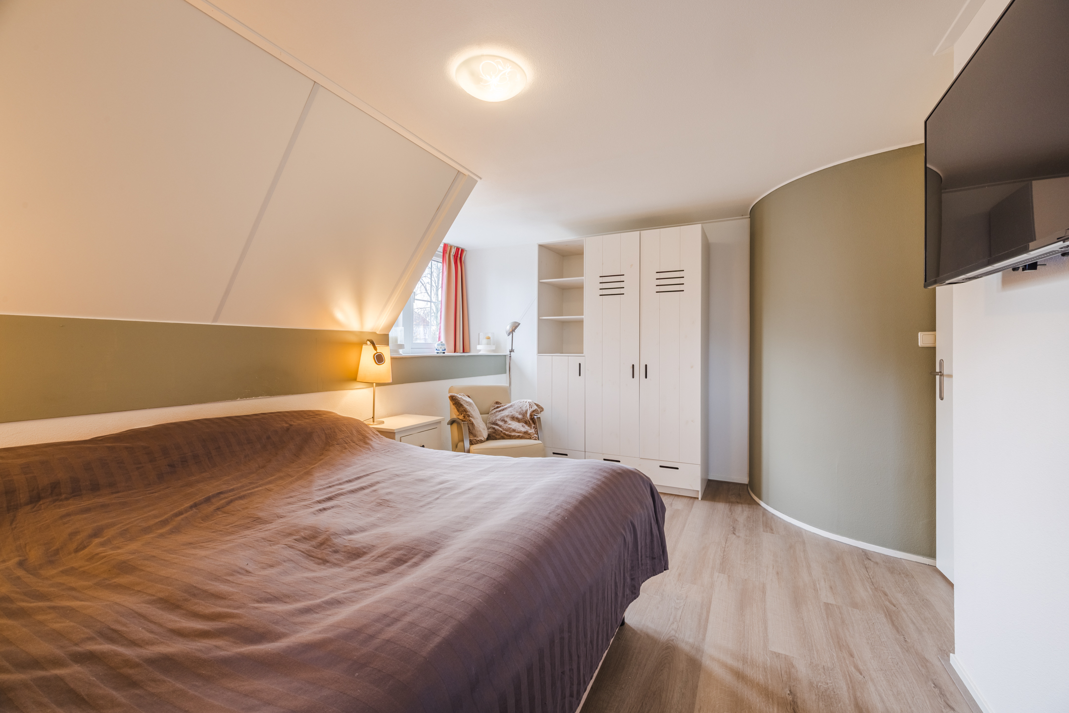 De begane grond is met zorg afgewerkt: een fraaie pvc-visgraatvloer met vloerverwarming, strak gestuukte wanden en een modern toilet zorgen voor een eigentijdse uitstraling. Als je hier vakantie viert, wil je echt niet meer terug naar huis!