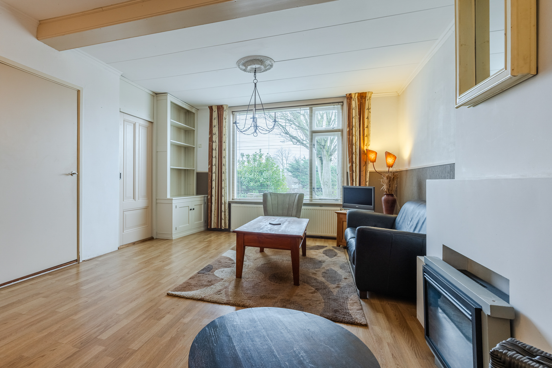 De woning heeft houten vloeren (begane grond klein deel beton).