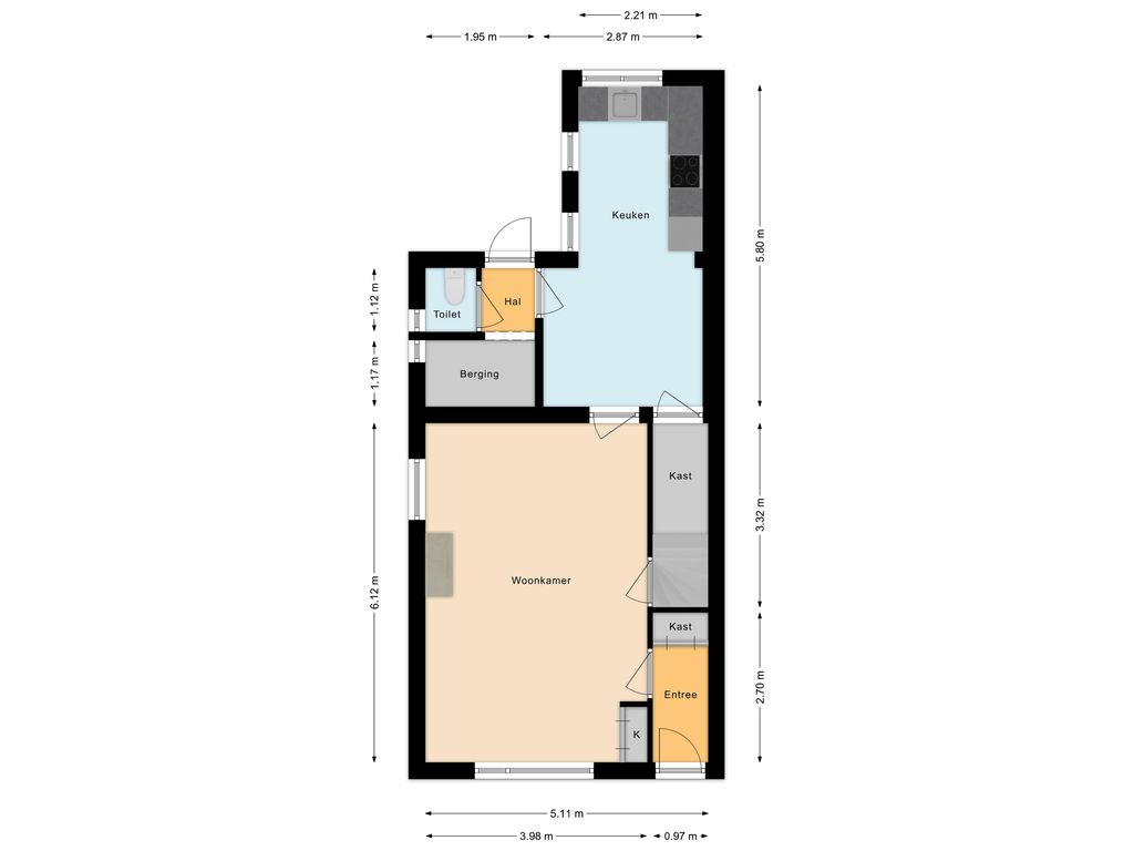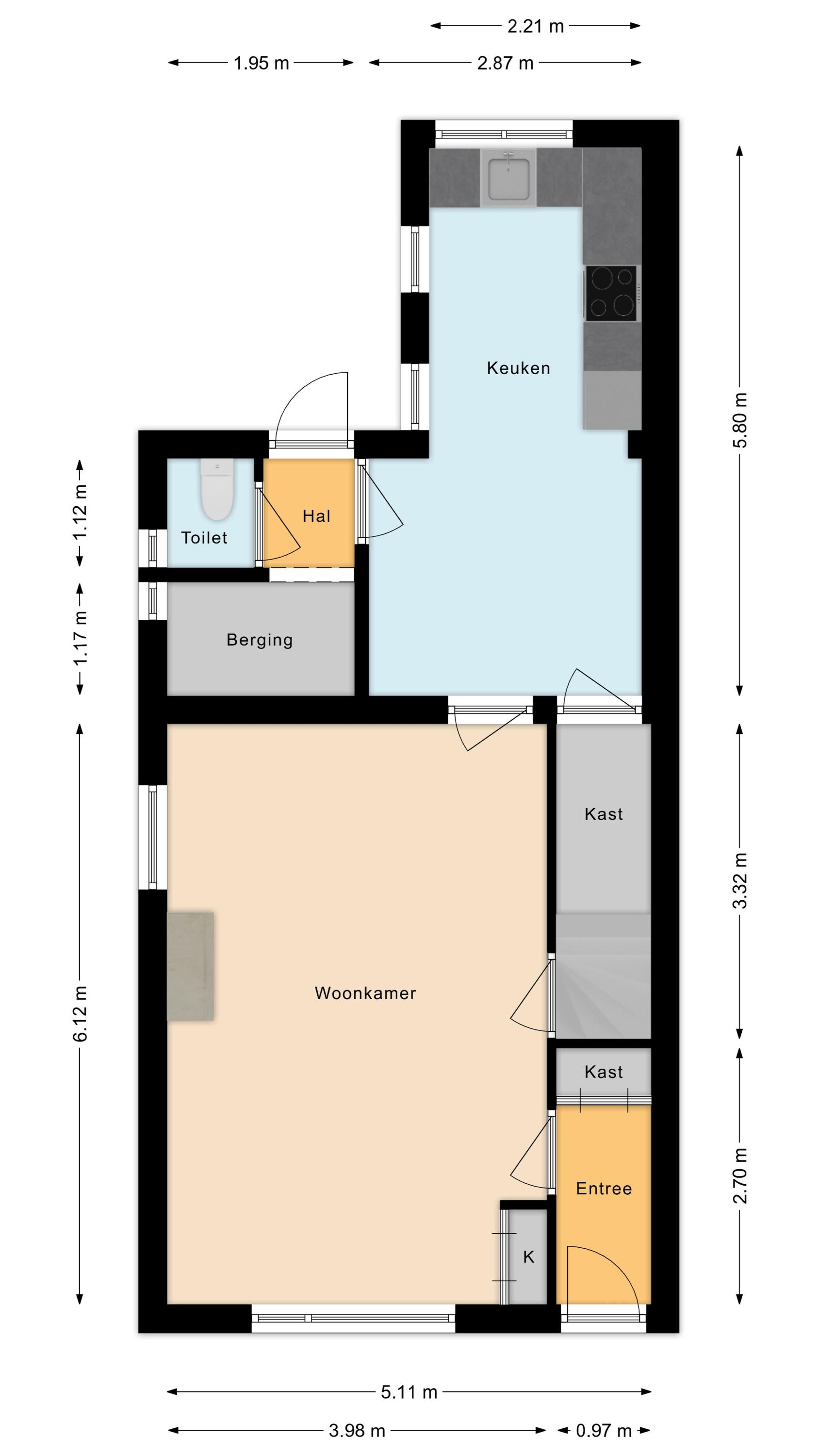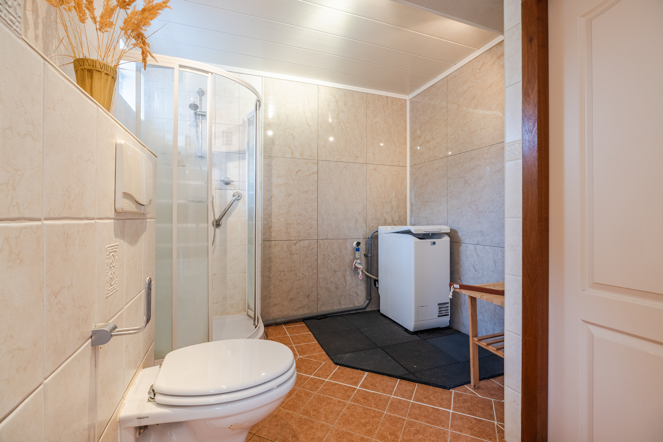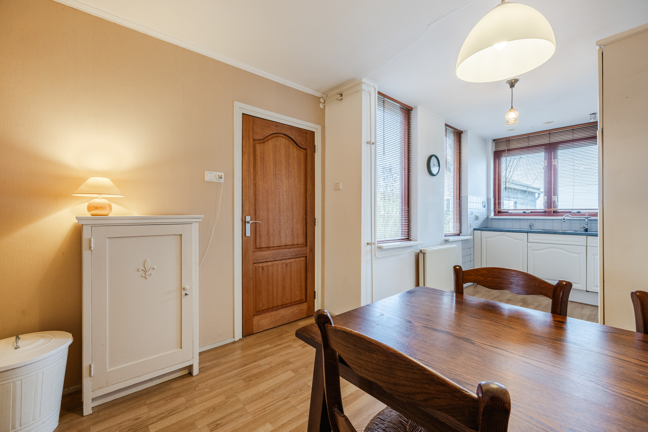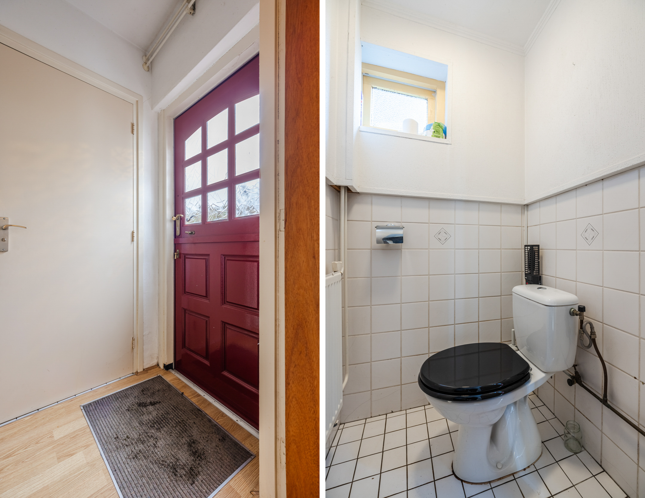 Vanuit de keuken kom je in de hal, met de inpandige berging, toiletruimte en een deur naar de achtertuin.