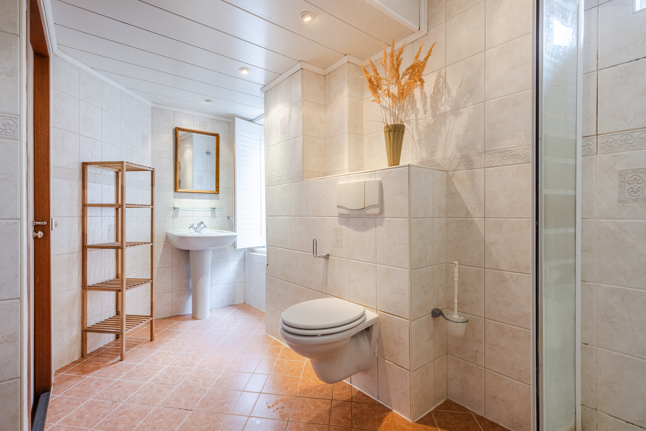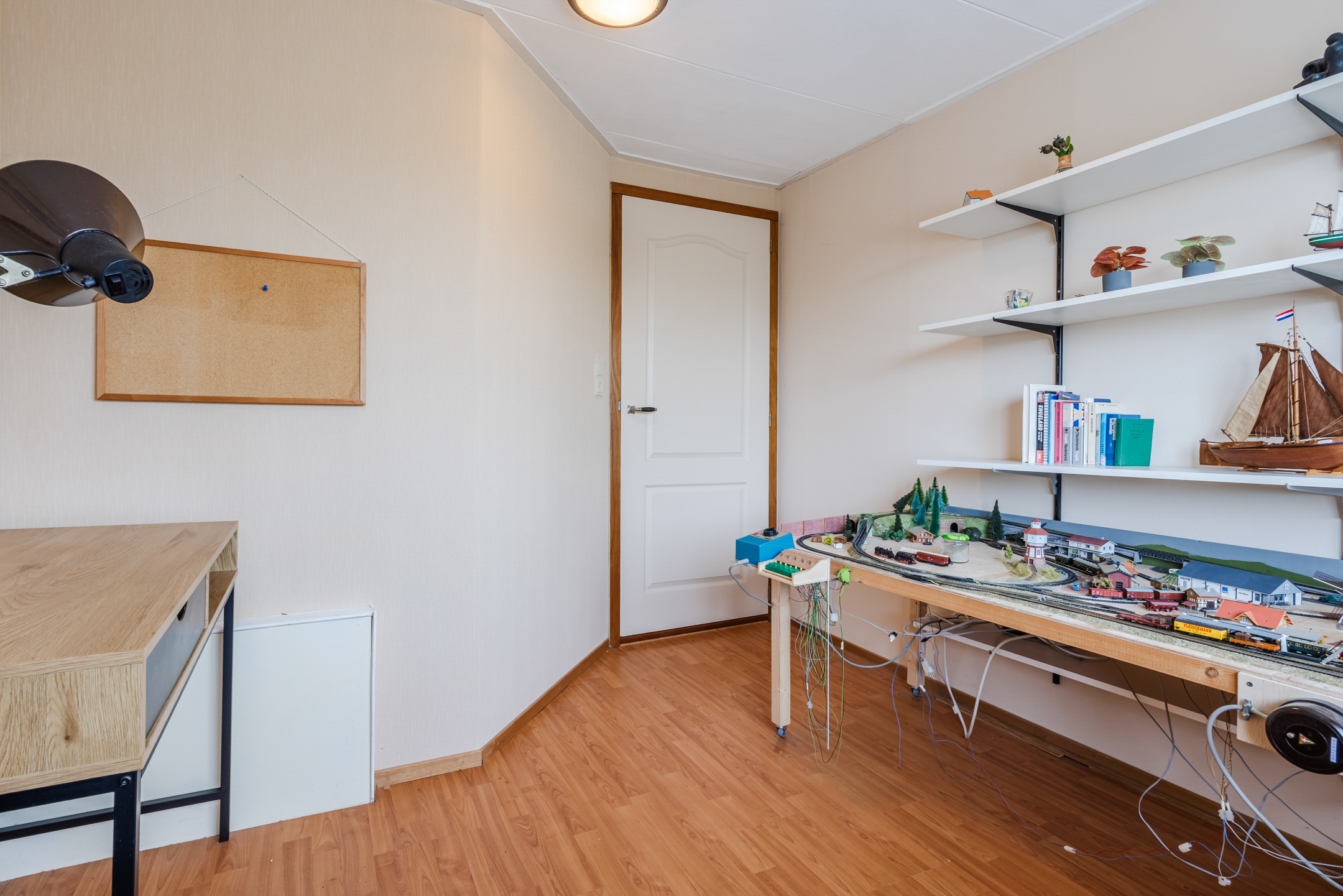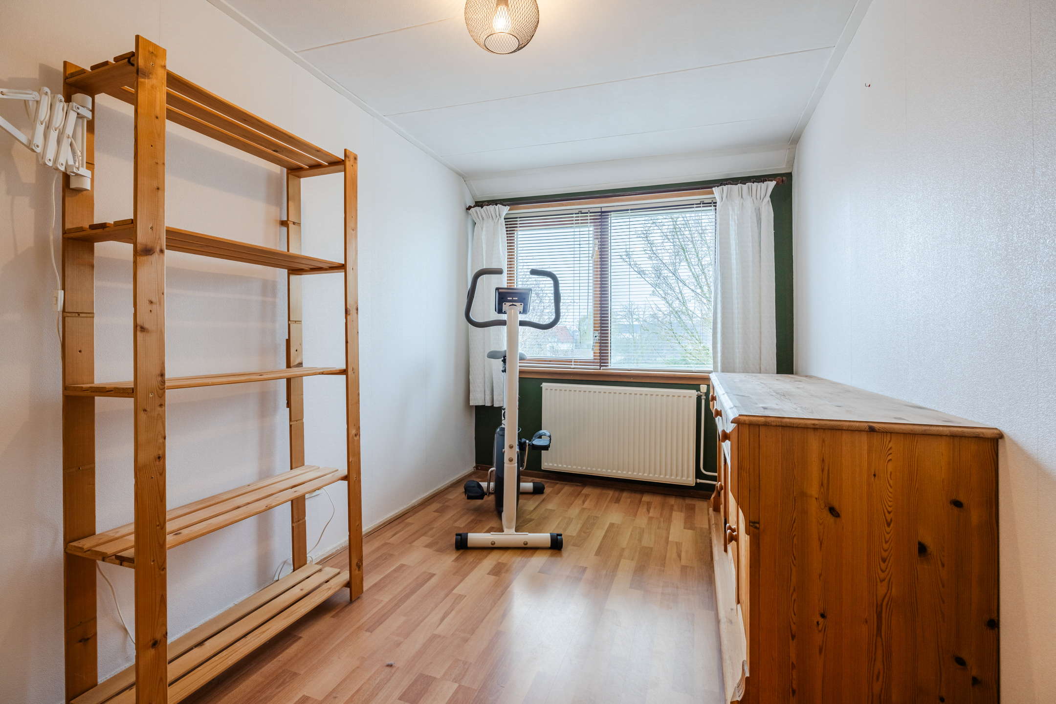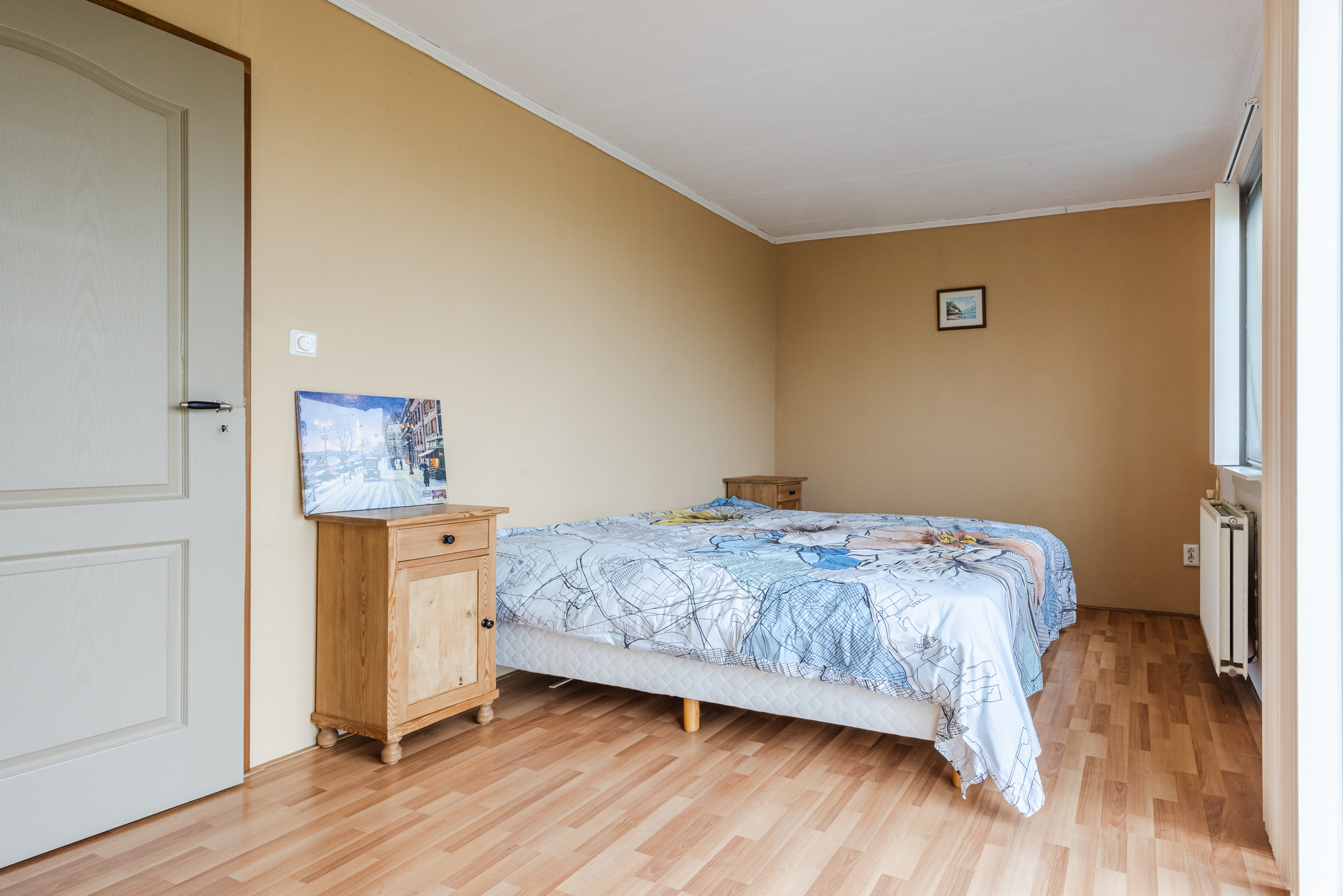 Overloop met toegang tot de 3 slaapkamers en de badkamer. De grootste slaapkamer is gelegen aan de achterzijde, heeft vrij uitzicht en een deur naar het dak. De andere 2 slaapkamers zijn aan de voorzijde gelegen. De ruime badkamer is ingericht met een vaste wastafel, douchecabine, 2e toilet en de witgoedaansluitingen. Vanaf de overloop is via een vlizotrap de zolder te bereiken, met bergruimte en de opstelplaats van de cv-combiketel (Intergas, 2023).
