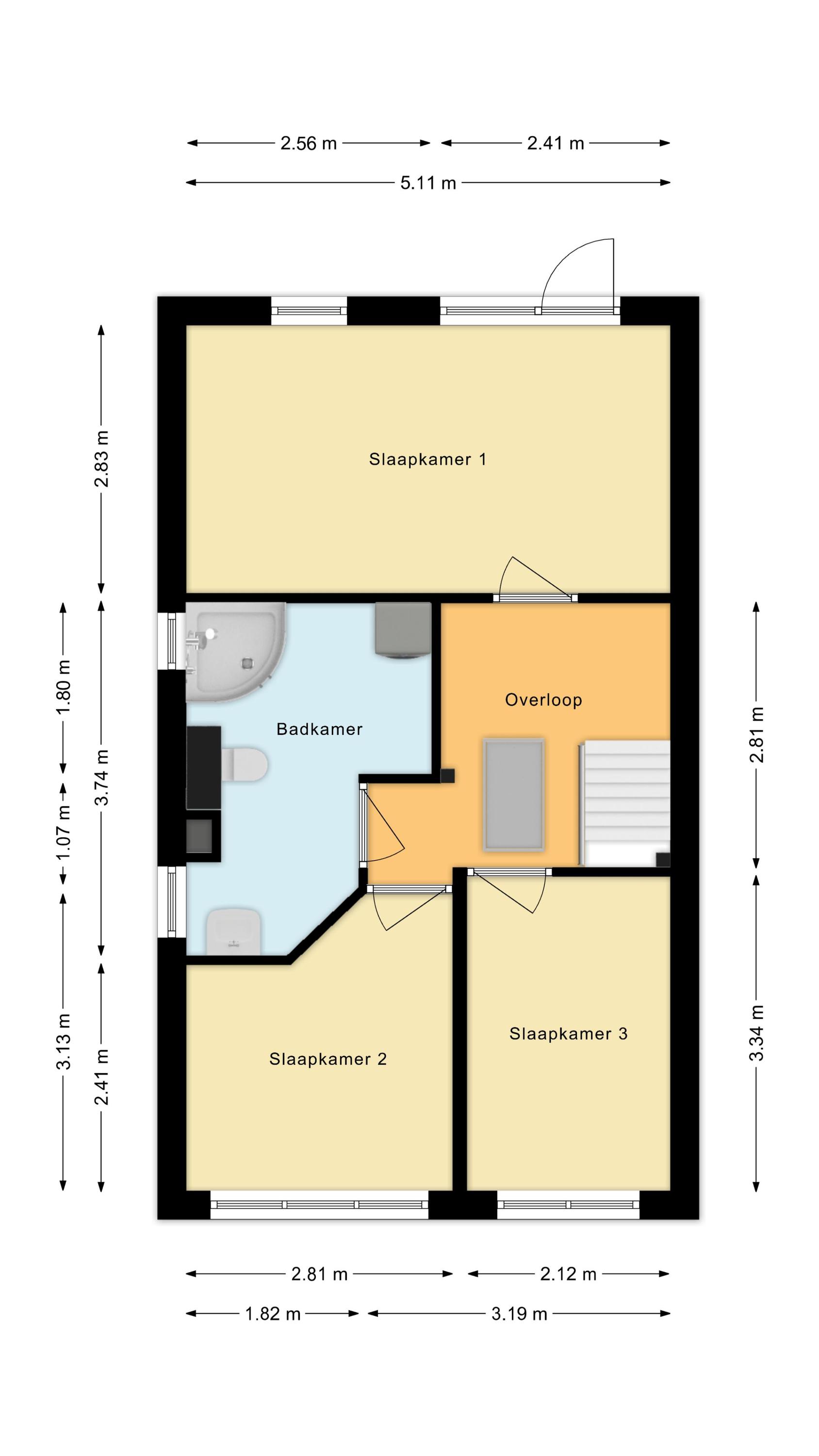 - Slaapkamer 2: 3.13/2.41 x 2.81
