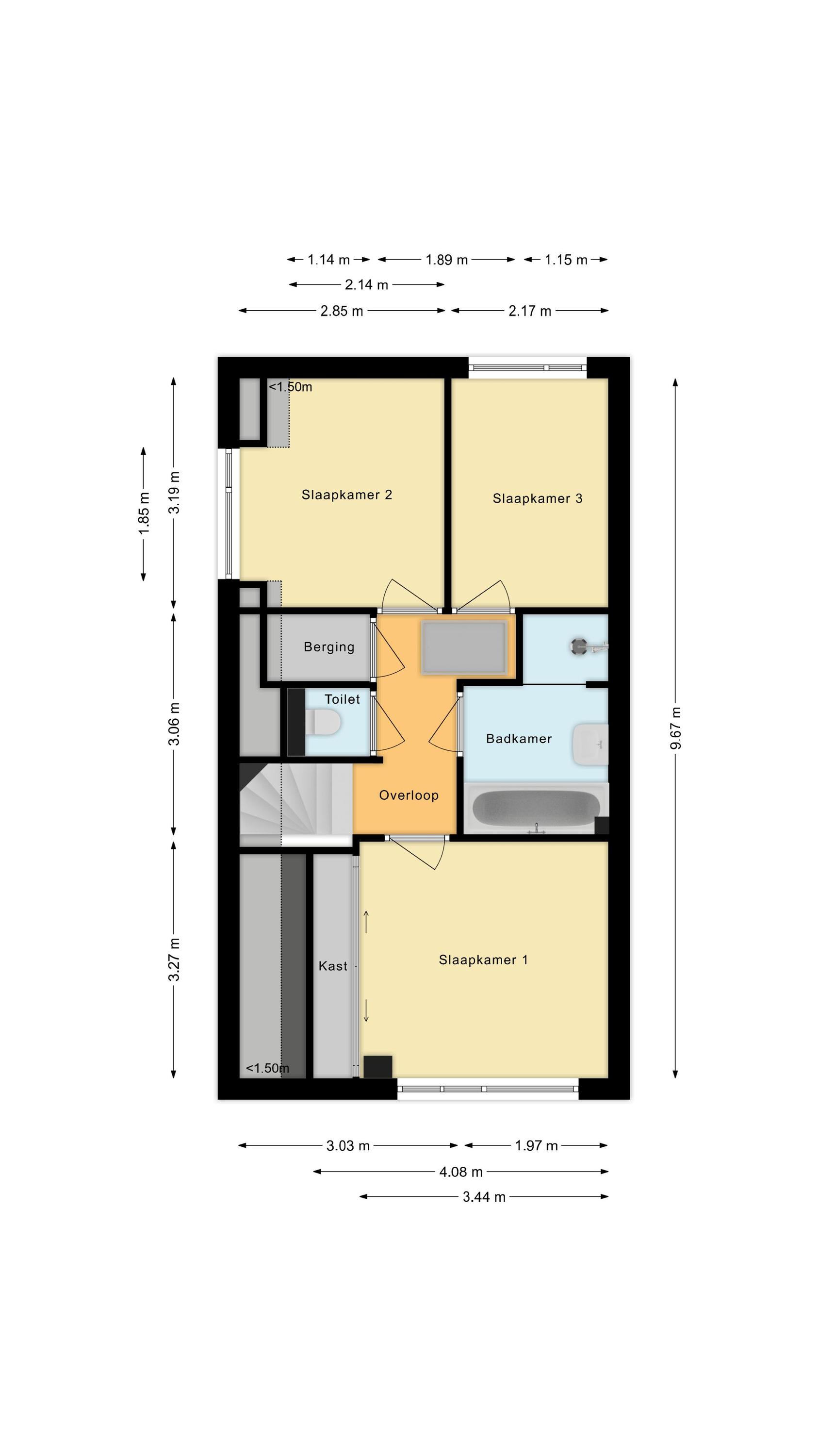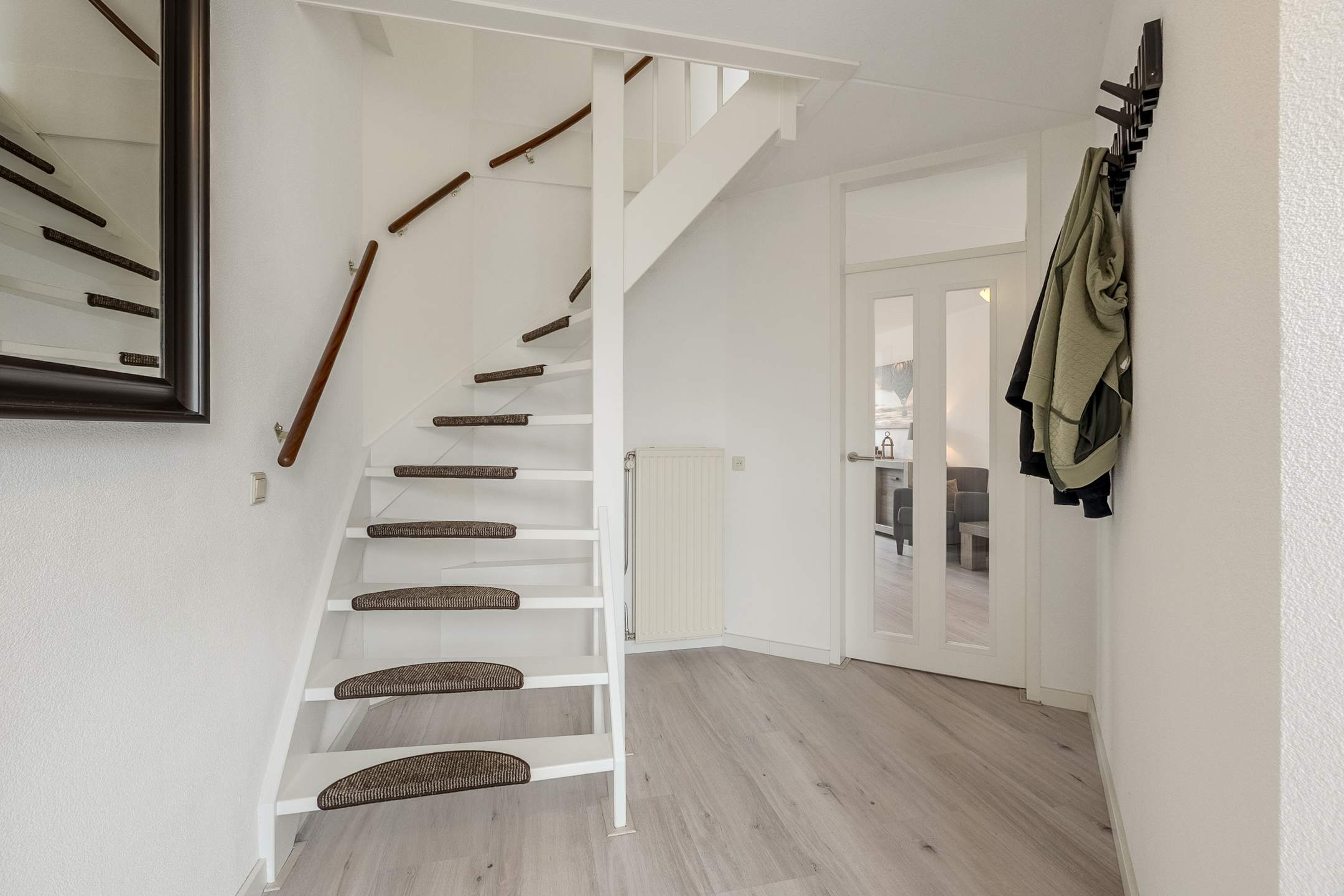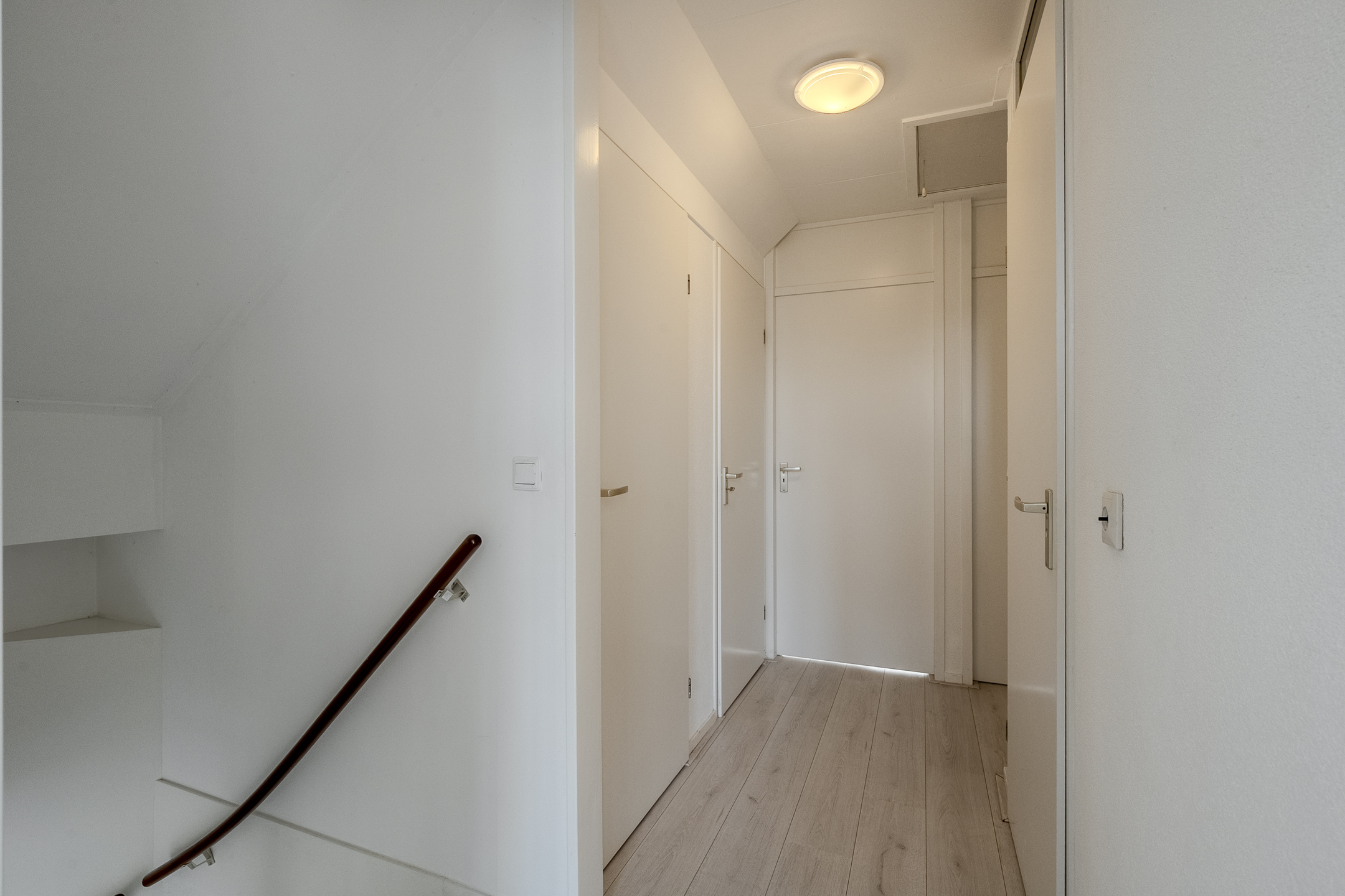 Overloop met toegang tot alle vertrekken, een vaste bergkast en een vlizotrap naar de bergzolder.