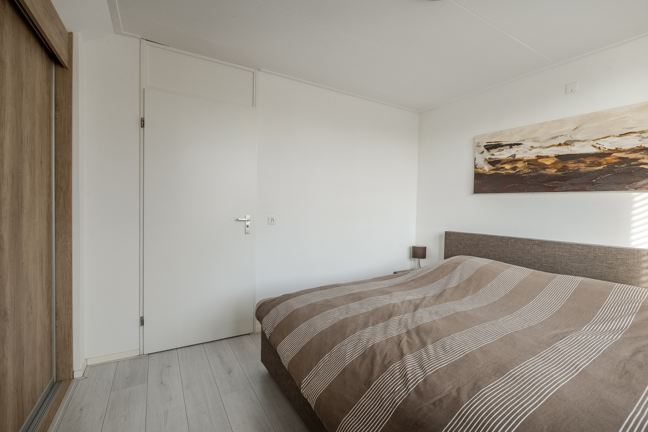 Aan de voorzijde bevindt zich een ruime slaapkamer met een vaste schuifwandkast en een elektrisch bedienbaar rolluik. Aan de achterzijde liggen nog twee slaapkamers, waarvan één is vergroot door middel van een dakkapel.