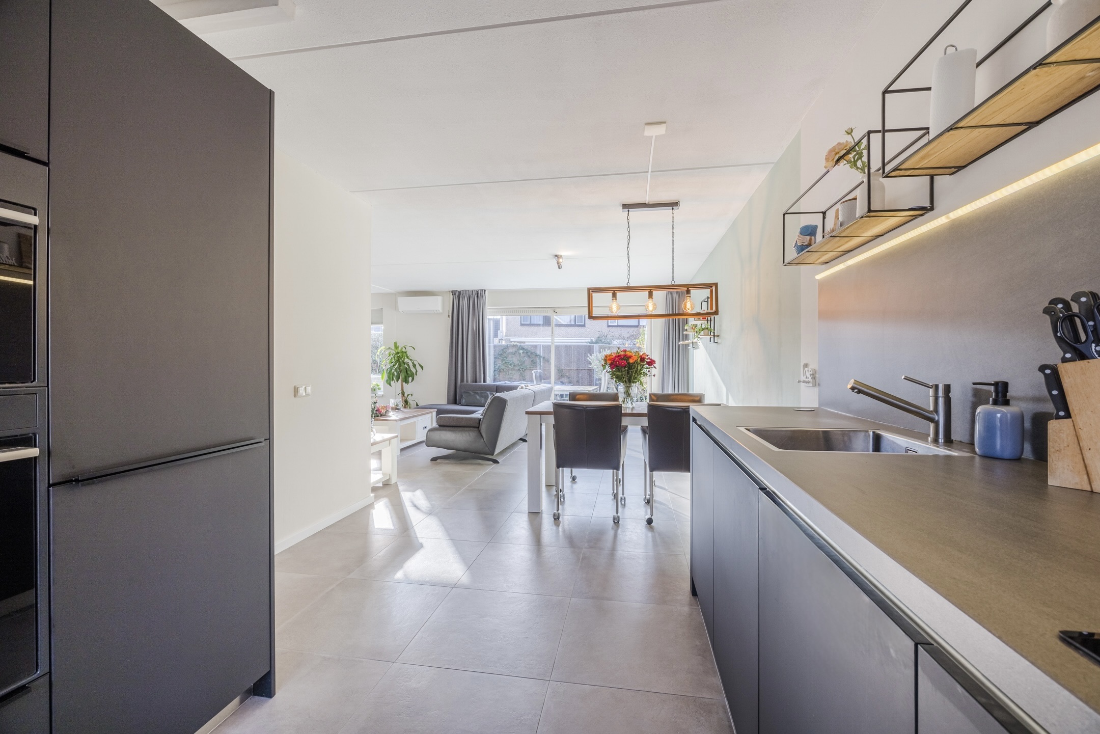 Dankzij de uitbouw op de begane grond is een fijne, ruime living ontstaan. De moderne (vandenBerg) keuken, plavuizenvloer met vloerverwarming en airco’s op zowel de begane grond als de eerste verdieping zorgen voor extra comfort.