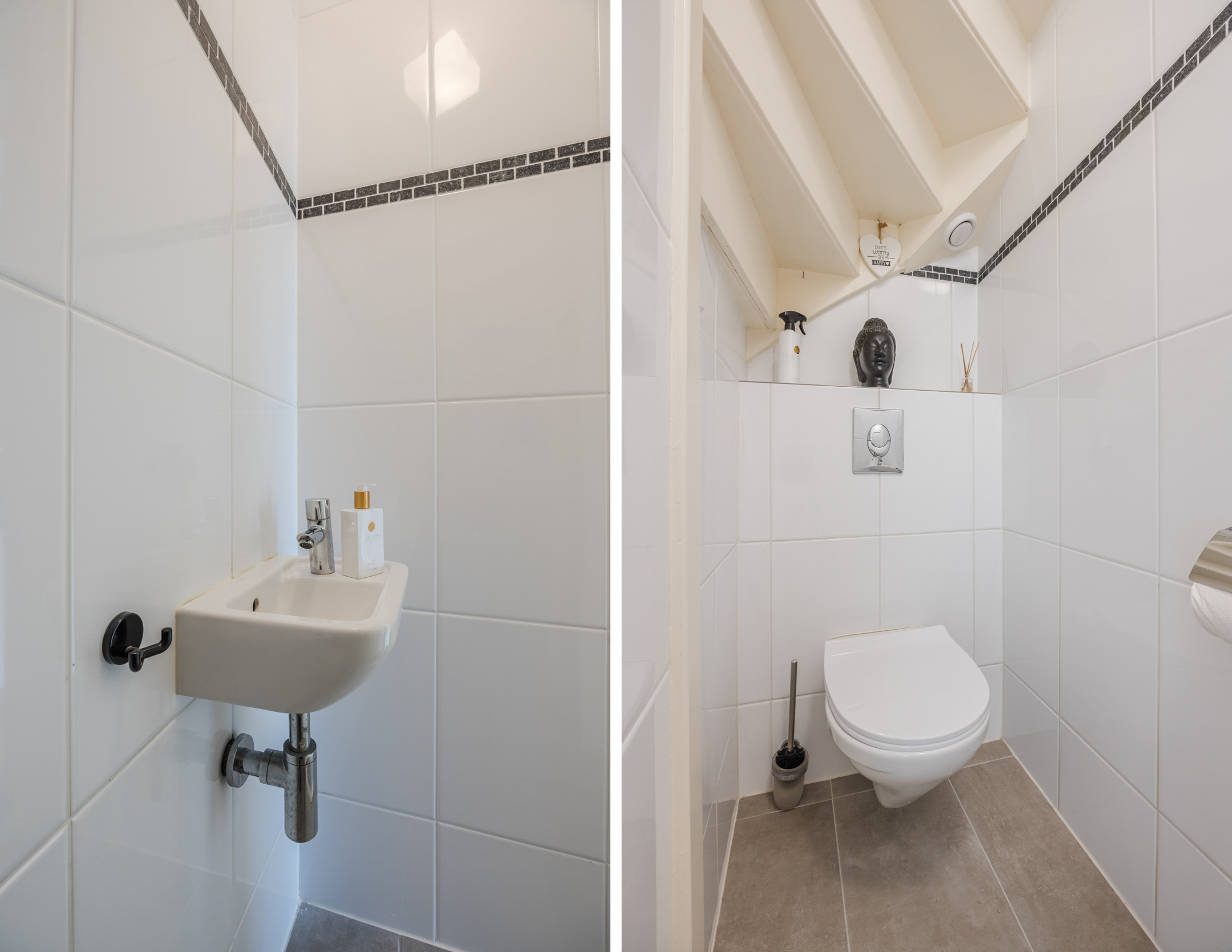 De volledig betegelde badkamer is ingericht met een inloopdouche, wastafel, tweede inbouwtoilet en elektrische vloerverwarming. Over de gehele verdieping is de fraaie laminaatvloer doorgelegd.