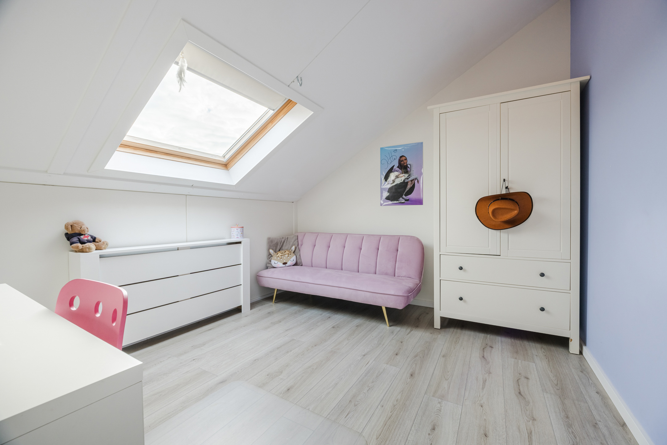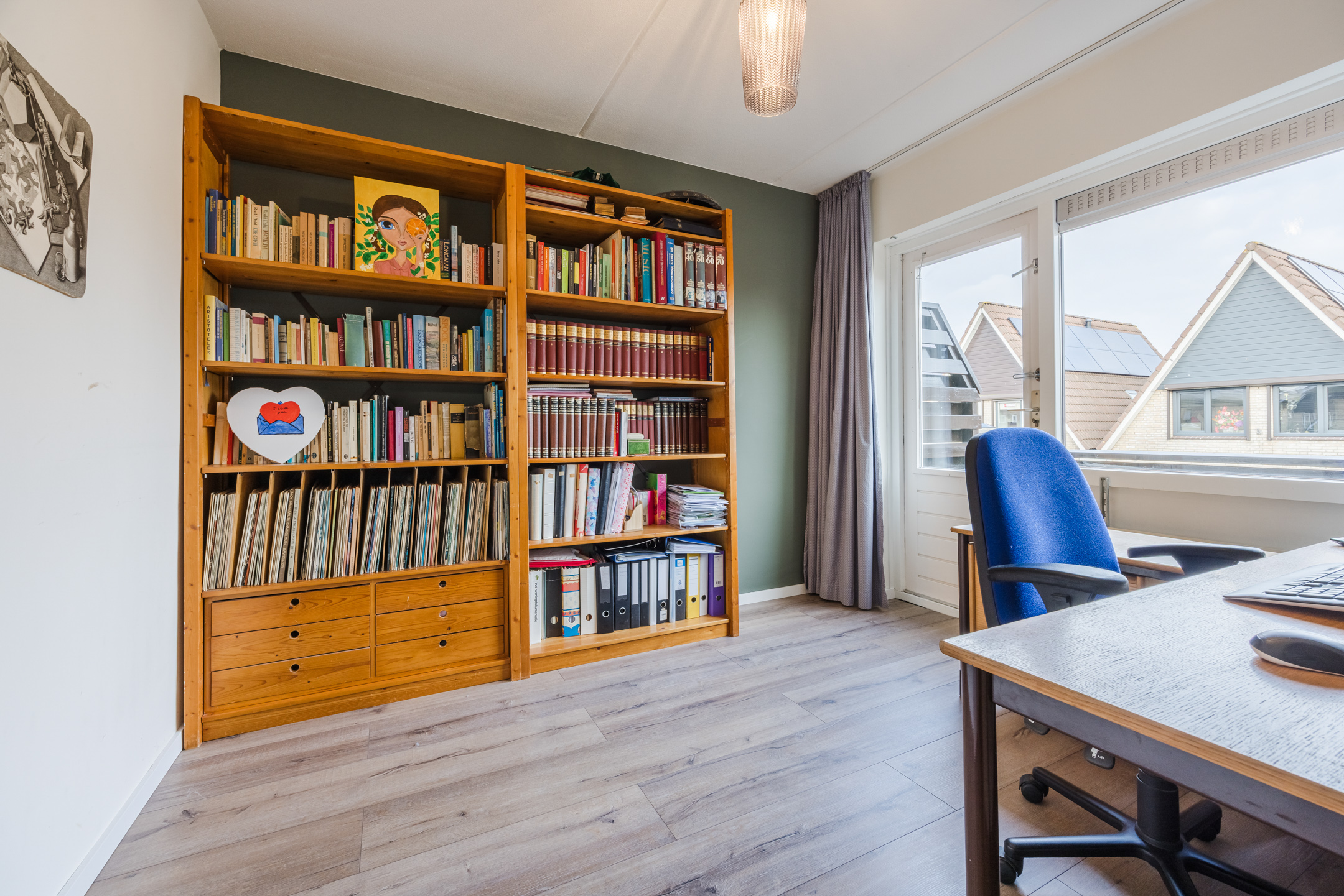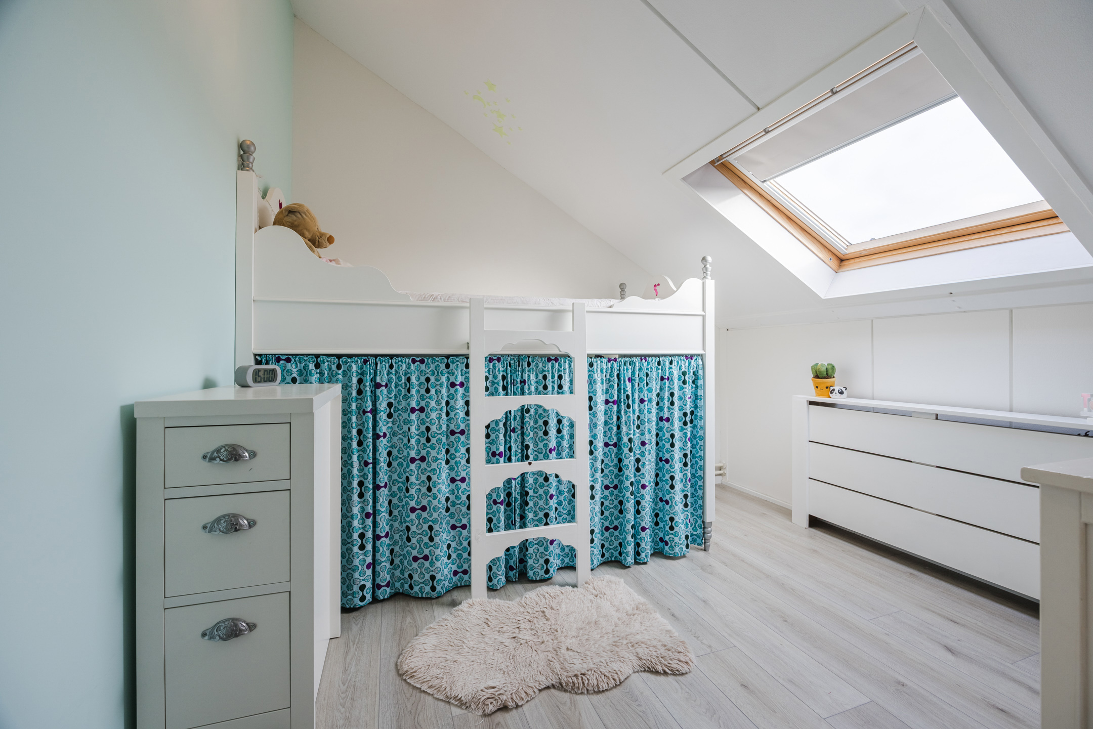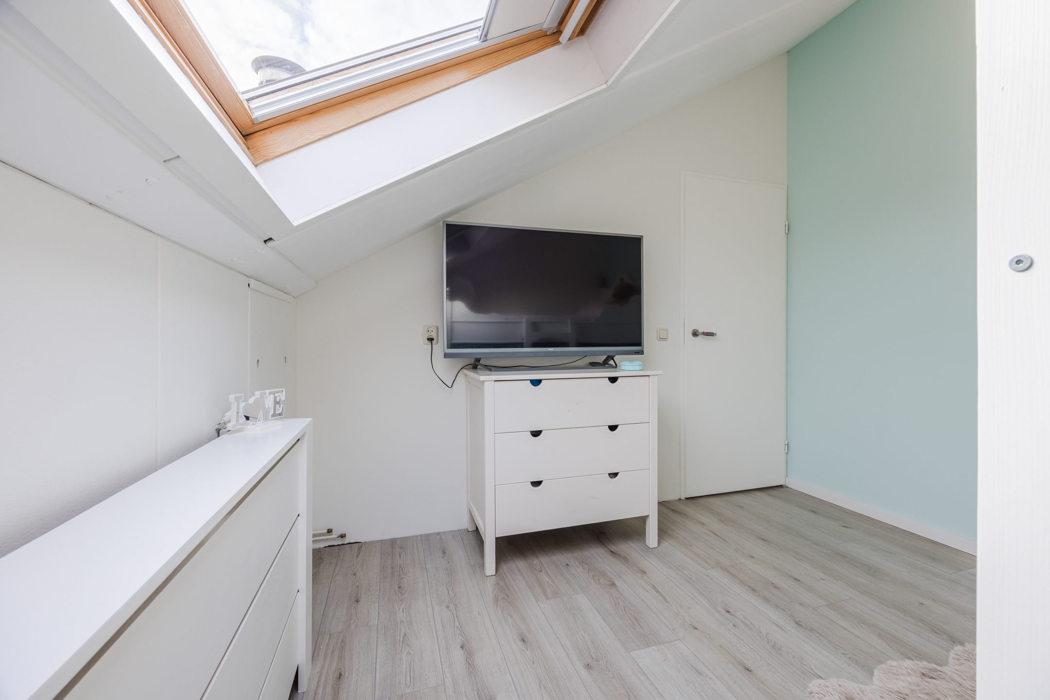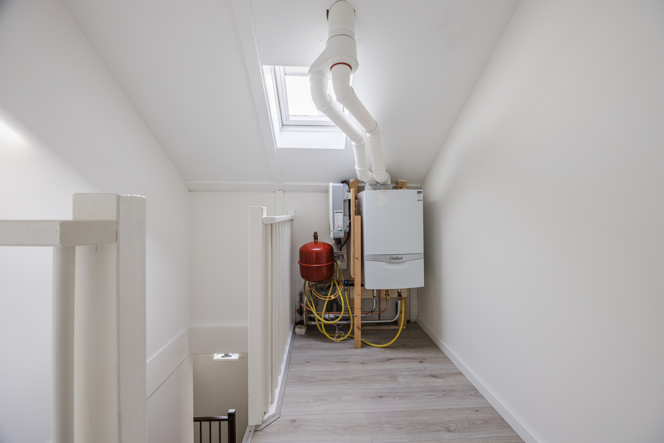 Via een vaste trap bereik je de voorzolder met de opstelplaats van de cv-combiketel (2018) en de omvormer van de zonnepanelen. Hier bevinden zich tevens de derde en vierde slaapkamer, beide voorzien van een groot Velux dakraam en een laminaatvloer. Daarnaast is er praktische bergruimte achter de knieschotten.