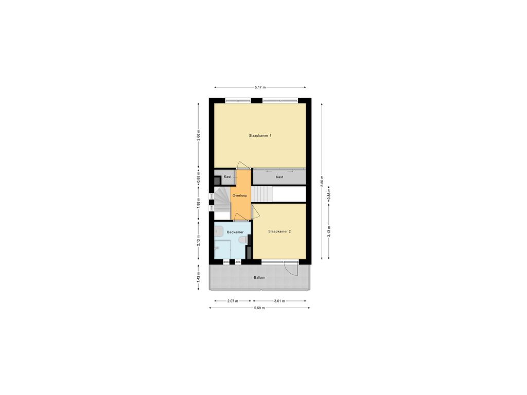 - Slaapkamer 2 : 3.13 x 3.01