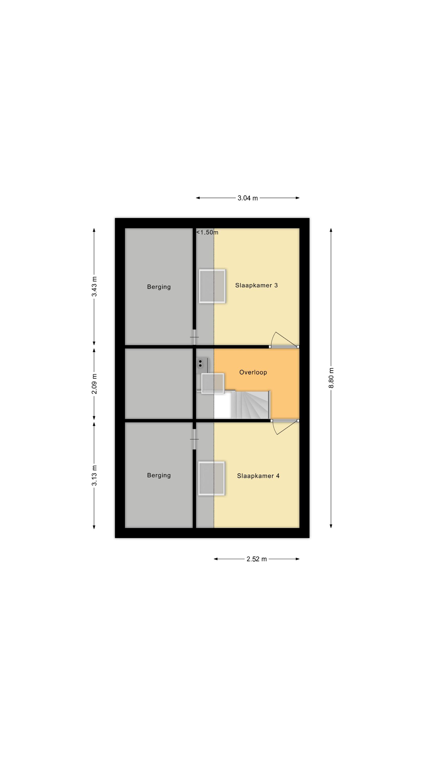 - Slaapkamer 3 : 3.43 x 2.52 (tot 1.5m lijn)